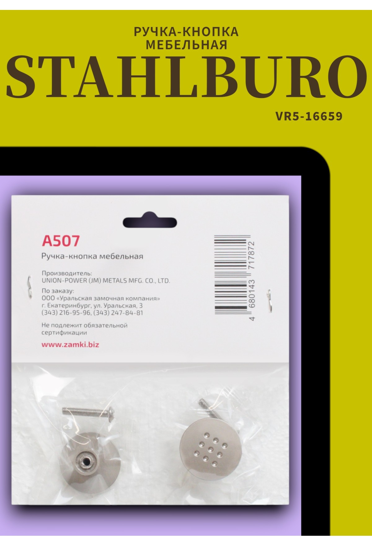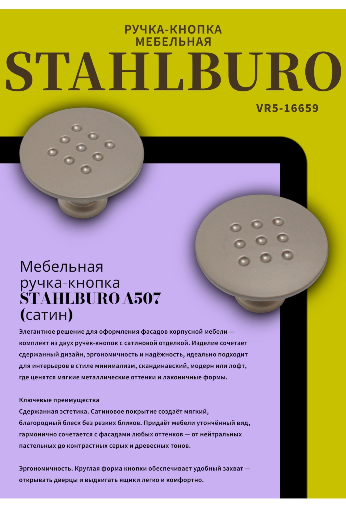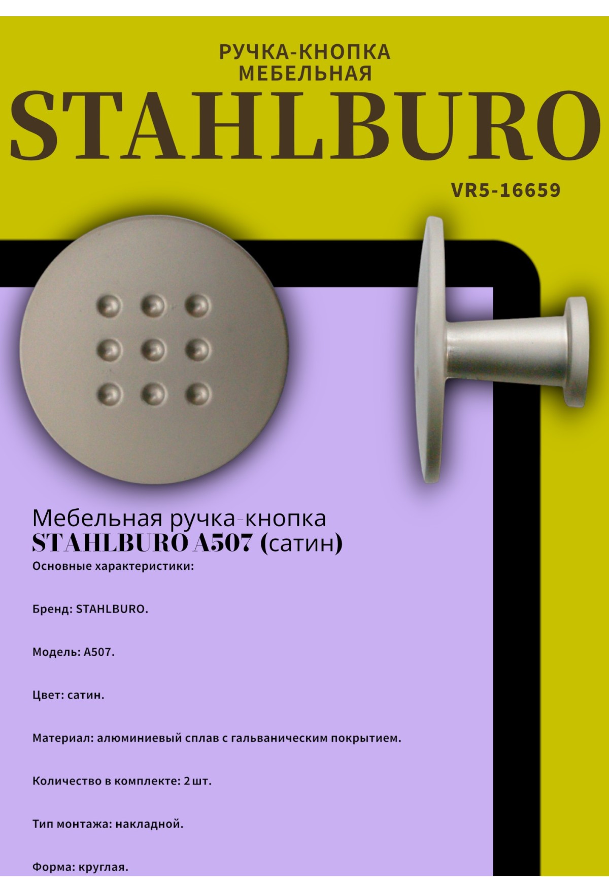 Мебельная ручка‑кнопка STAHLBURO A507 (сатин, 2 шт. в комплекте)