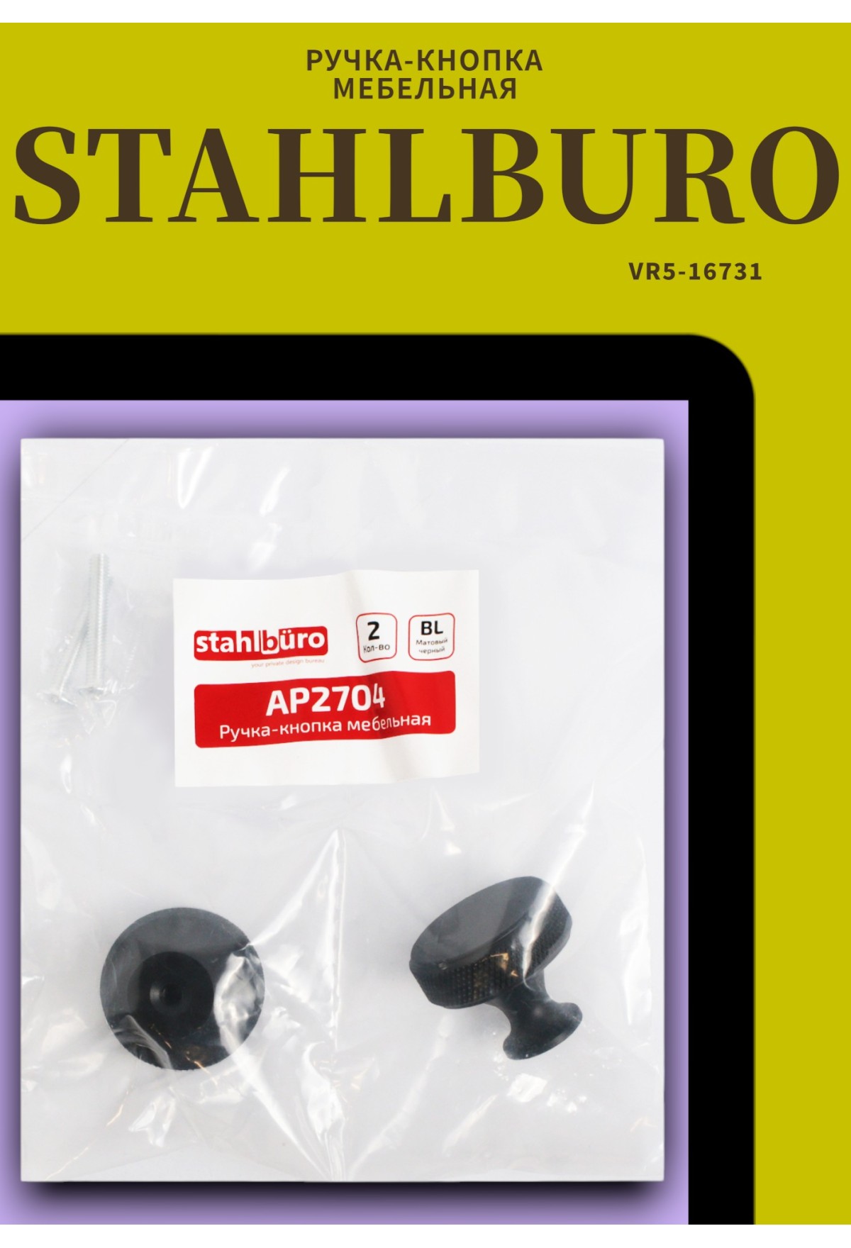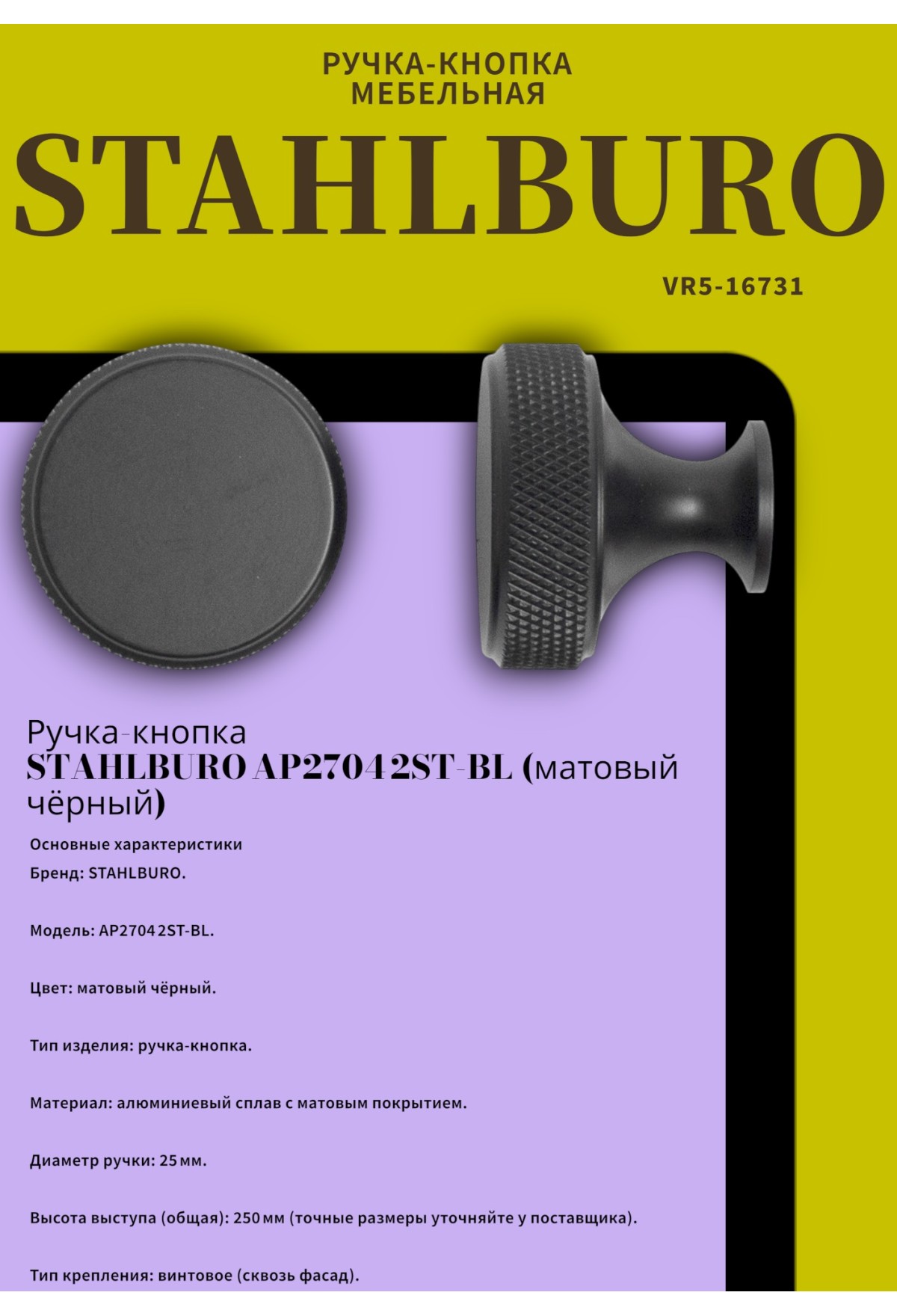 Ручка‑кнопка STAHLBURO AP2704 2ST‑BL (матовый чёрный)
