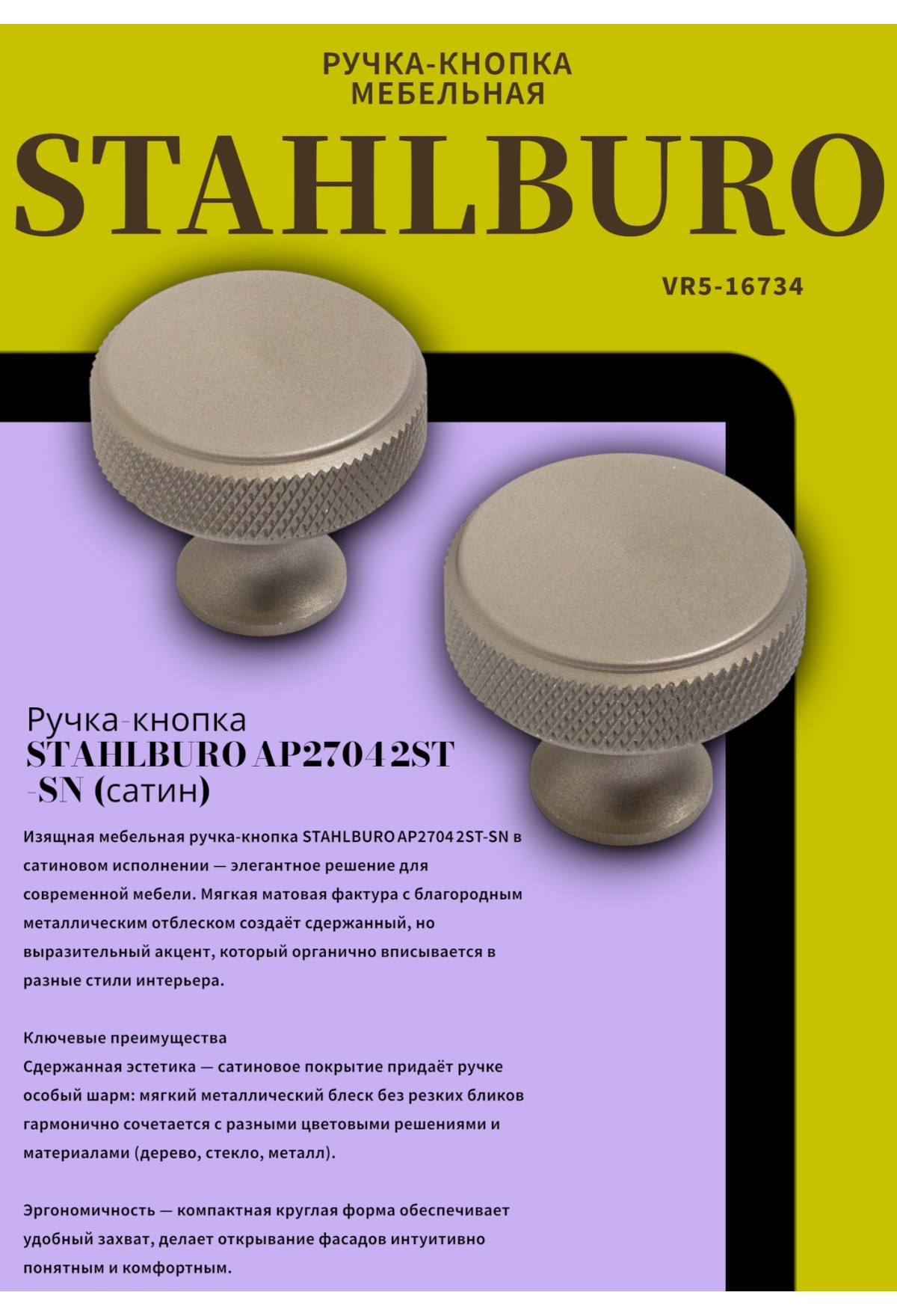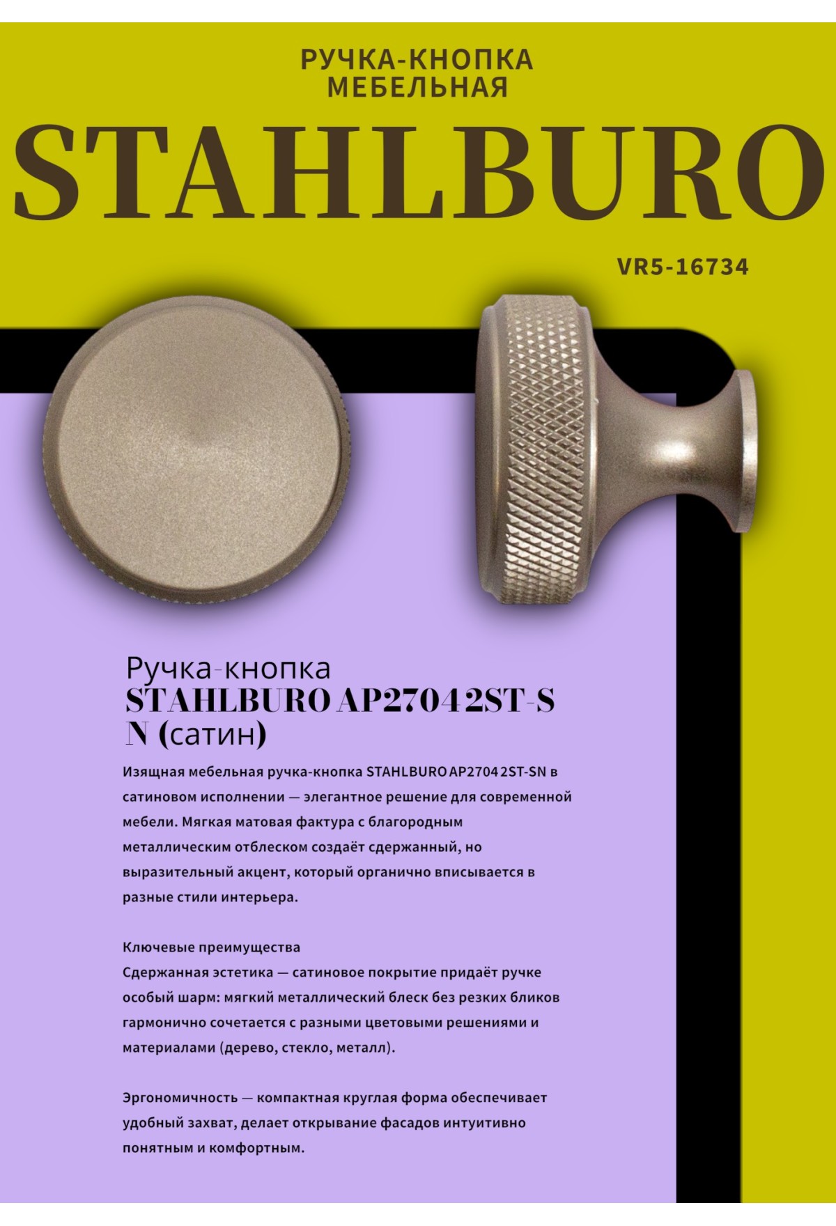 Ручка‑кнопка STAHLBURO AP2704 2ST‑SN (сатин)