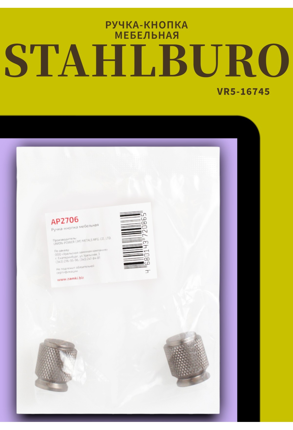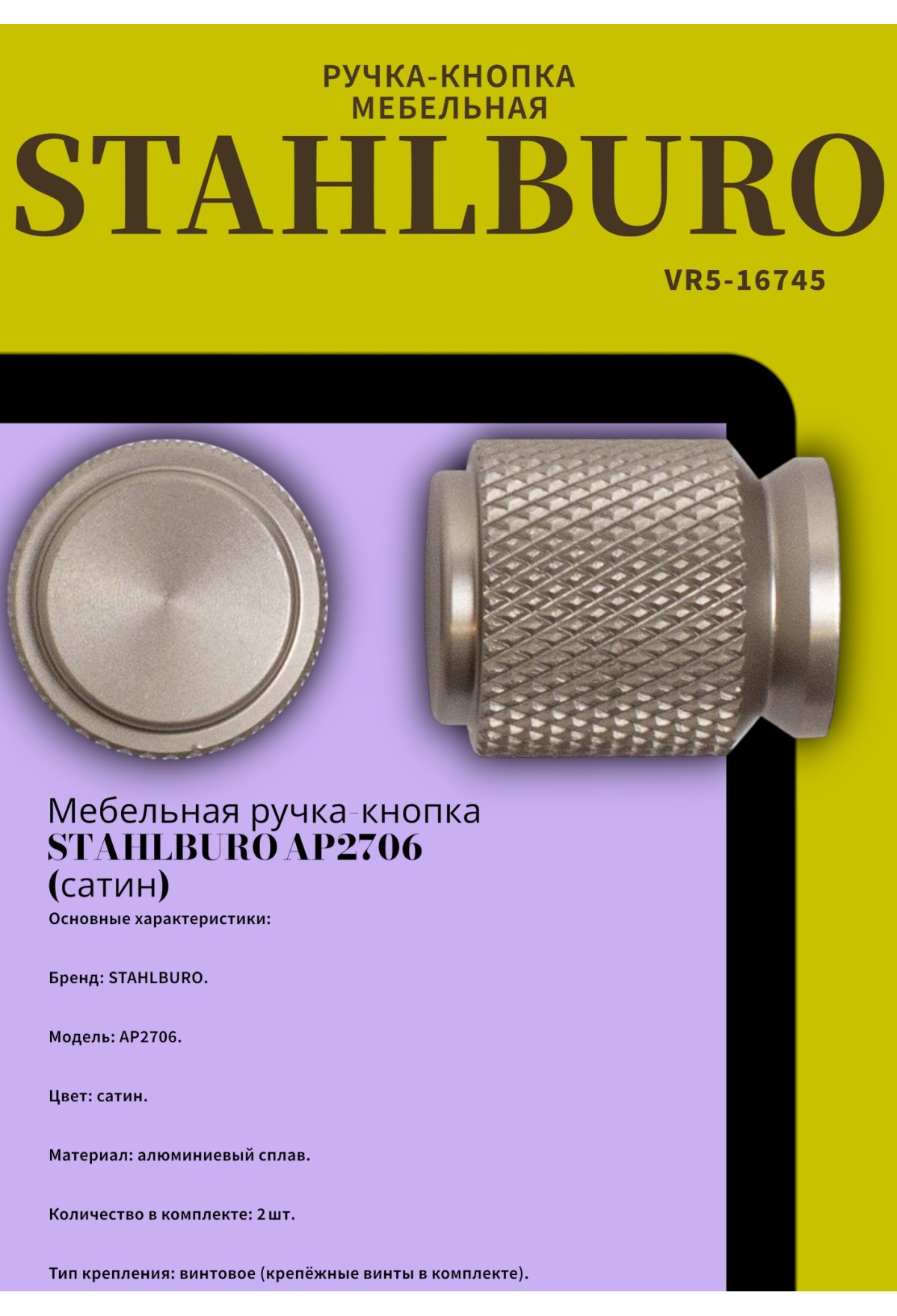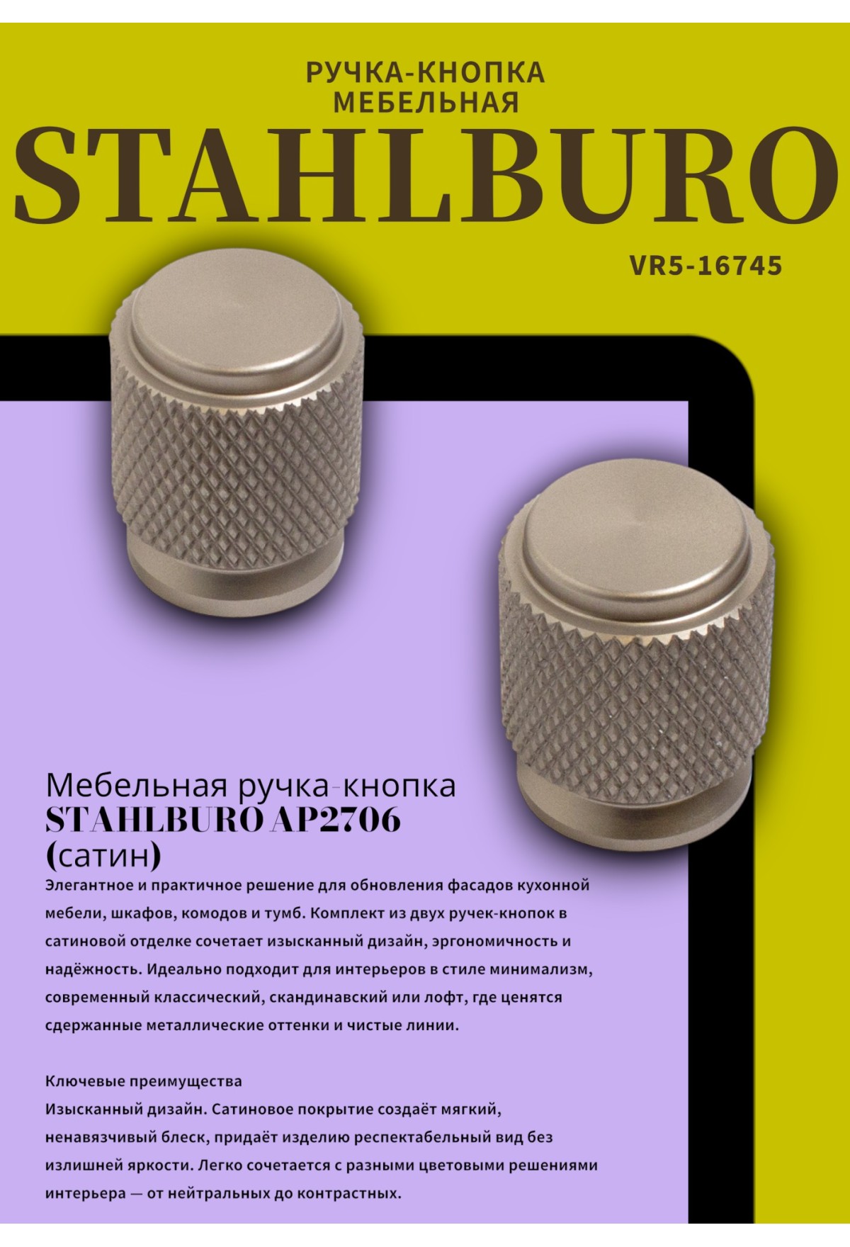 Мебельная ручка‑кнопка STAHLBURO AP2706 (сатин, 2 шт. в комплекте)
