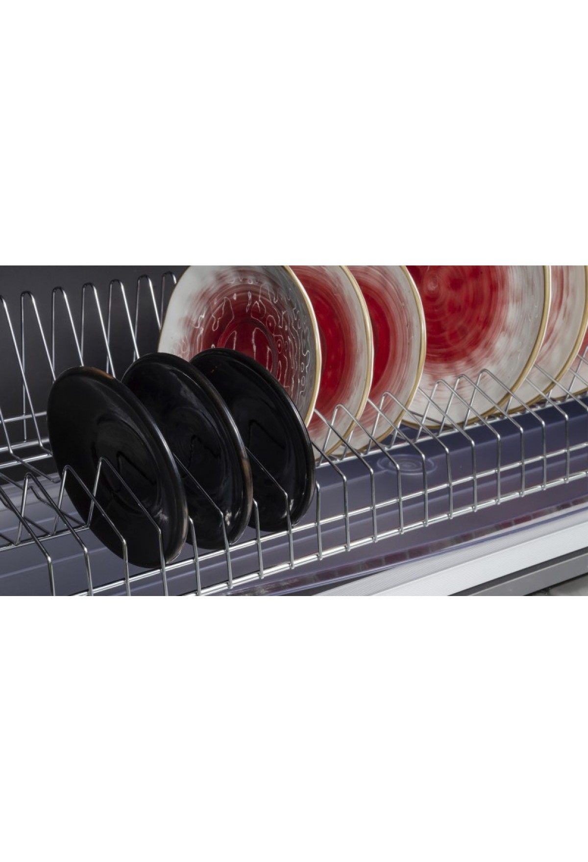 Особая форма прутков нижнего уровня позволяет по-настоящему удобно расположить в пространстве сушки большое количество посуды любого диаметра – от крошечных кофейных блюдец до габаритных сервировочных тарелок. При этом необязательно размещать посуду по центру, удобно ставить её и в дальние, и в ближние сектора сушки.