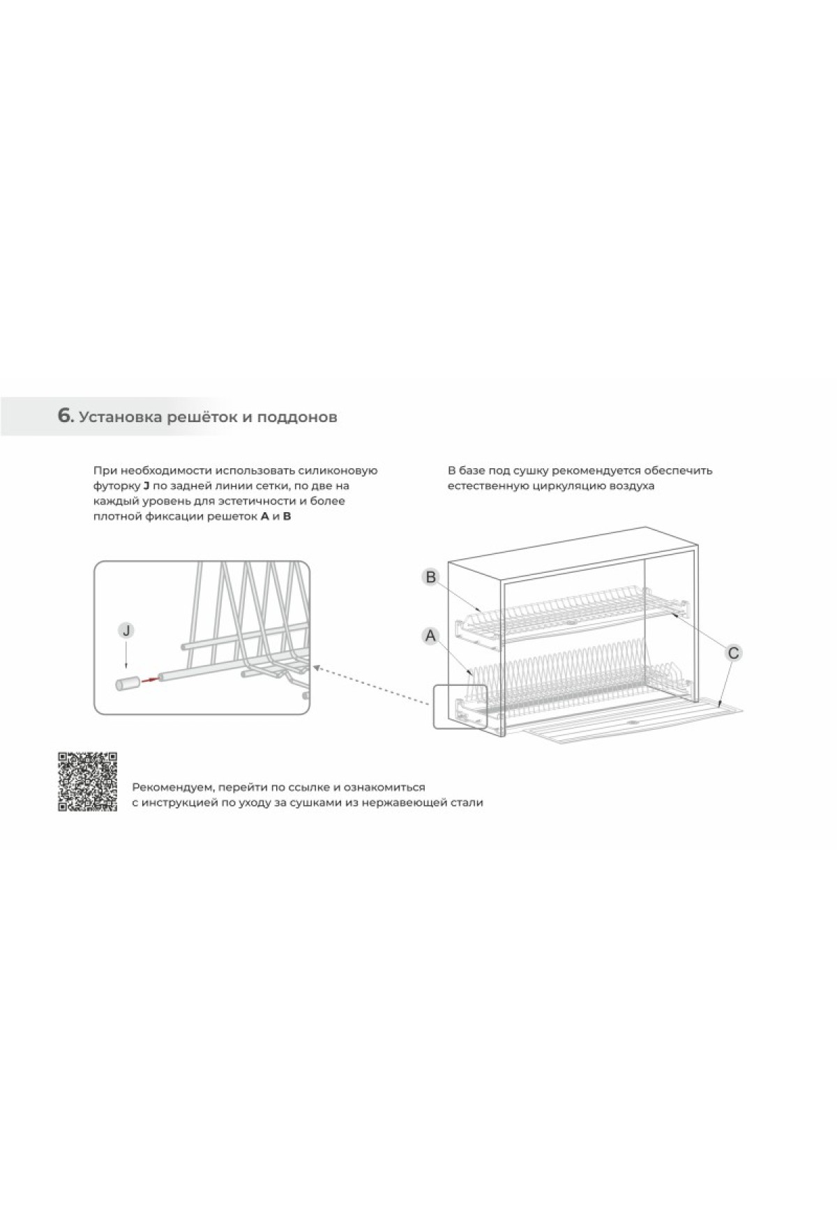 STUDIO 16 SU08 — сушка для посуды в верхнюю базу из прутковой нержавеющей стали для мебели из плит толщиной 16 мм. Модель монтируется в короб без малейших зазоров. Подходит для коробов без дна (рекомендовано) и "глухих".
