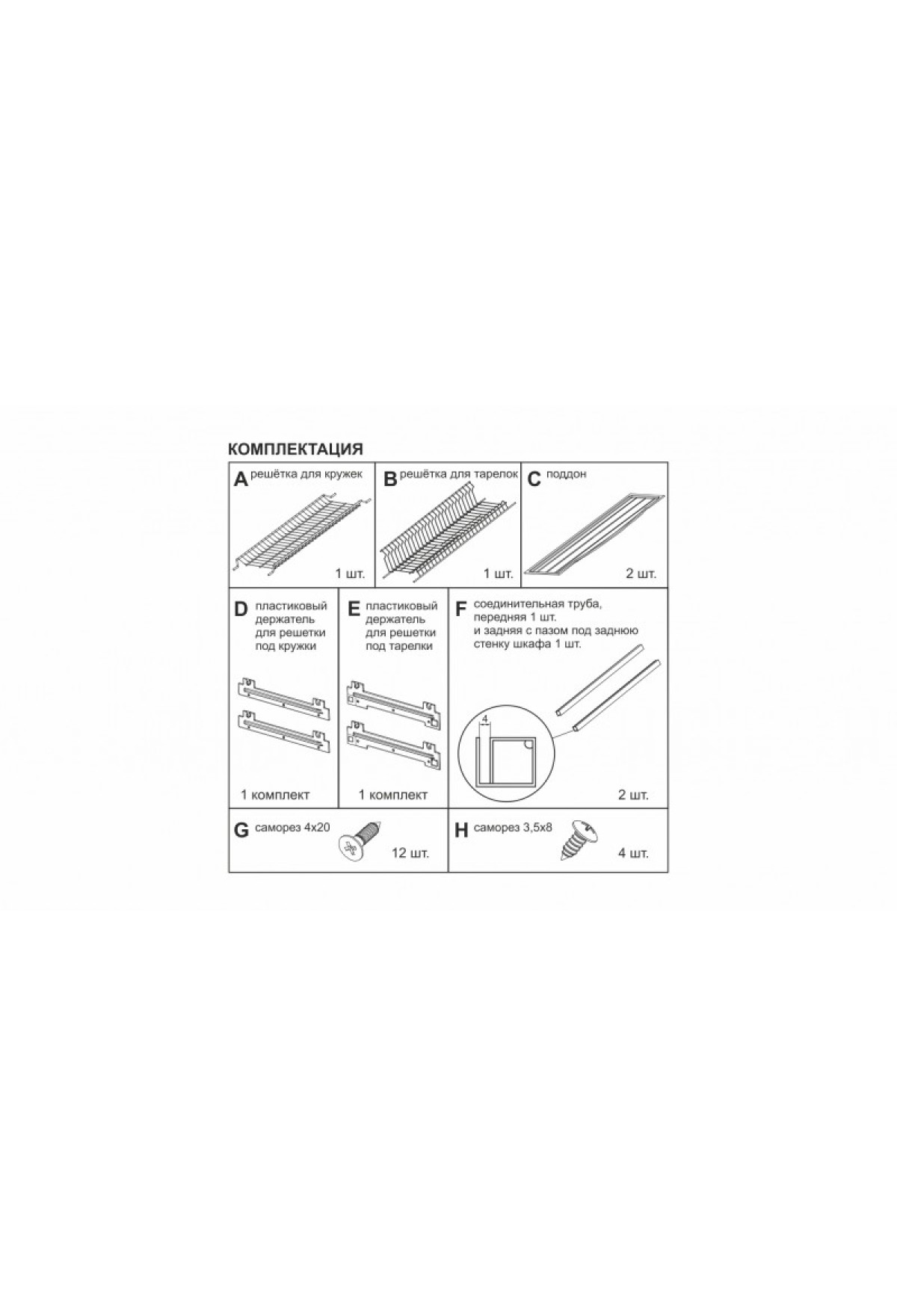 - 2 комплекта пластиковых держателей нижнего и верхнего уровня