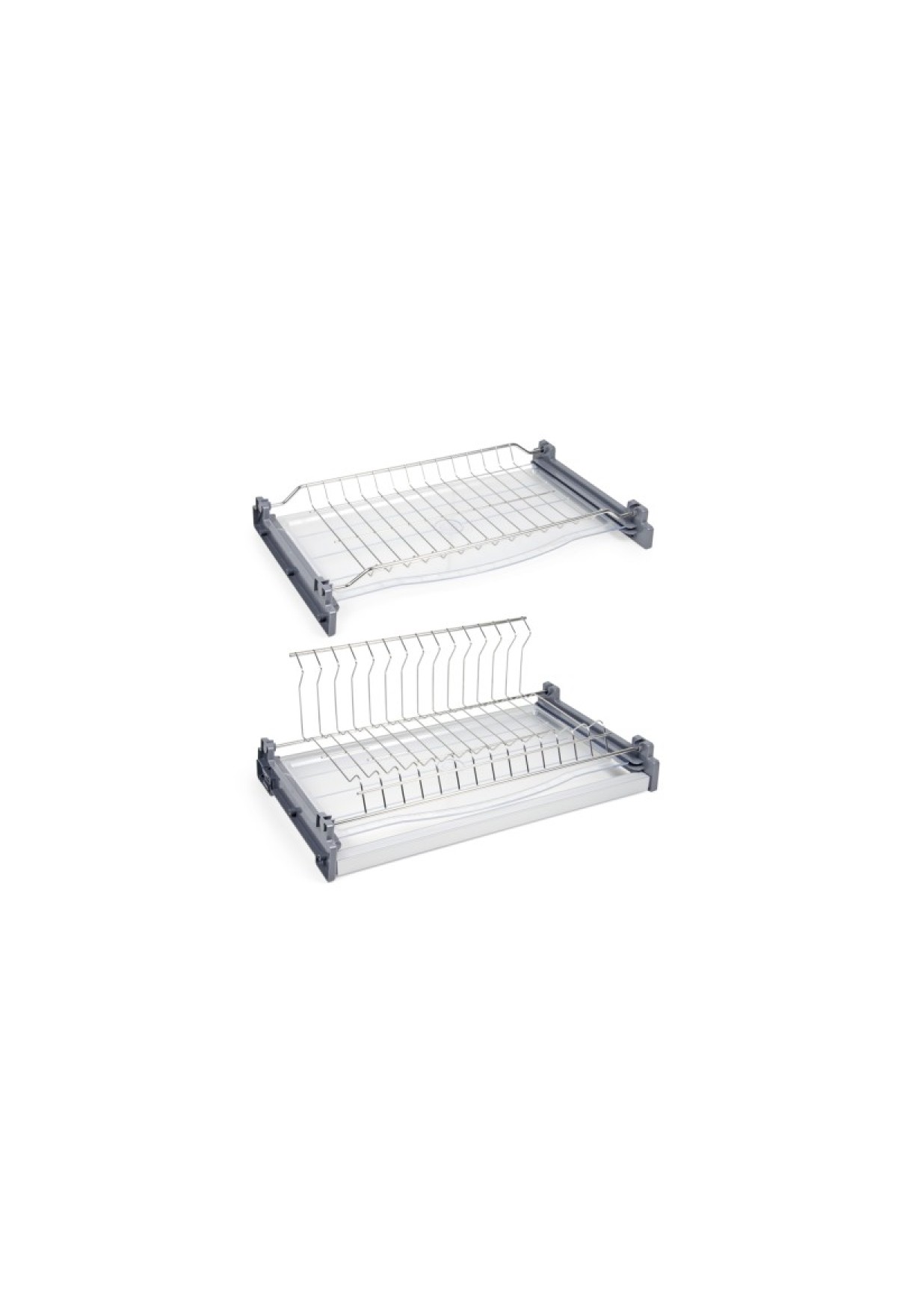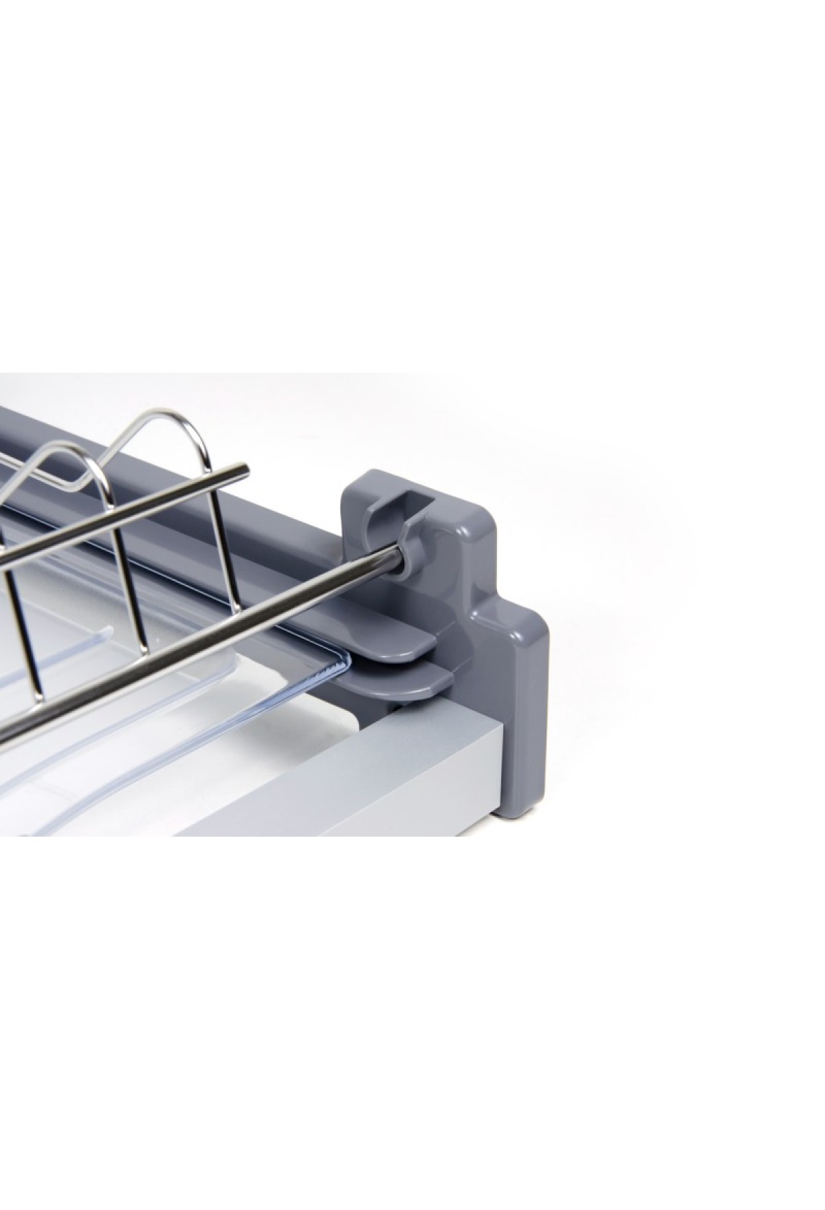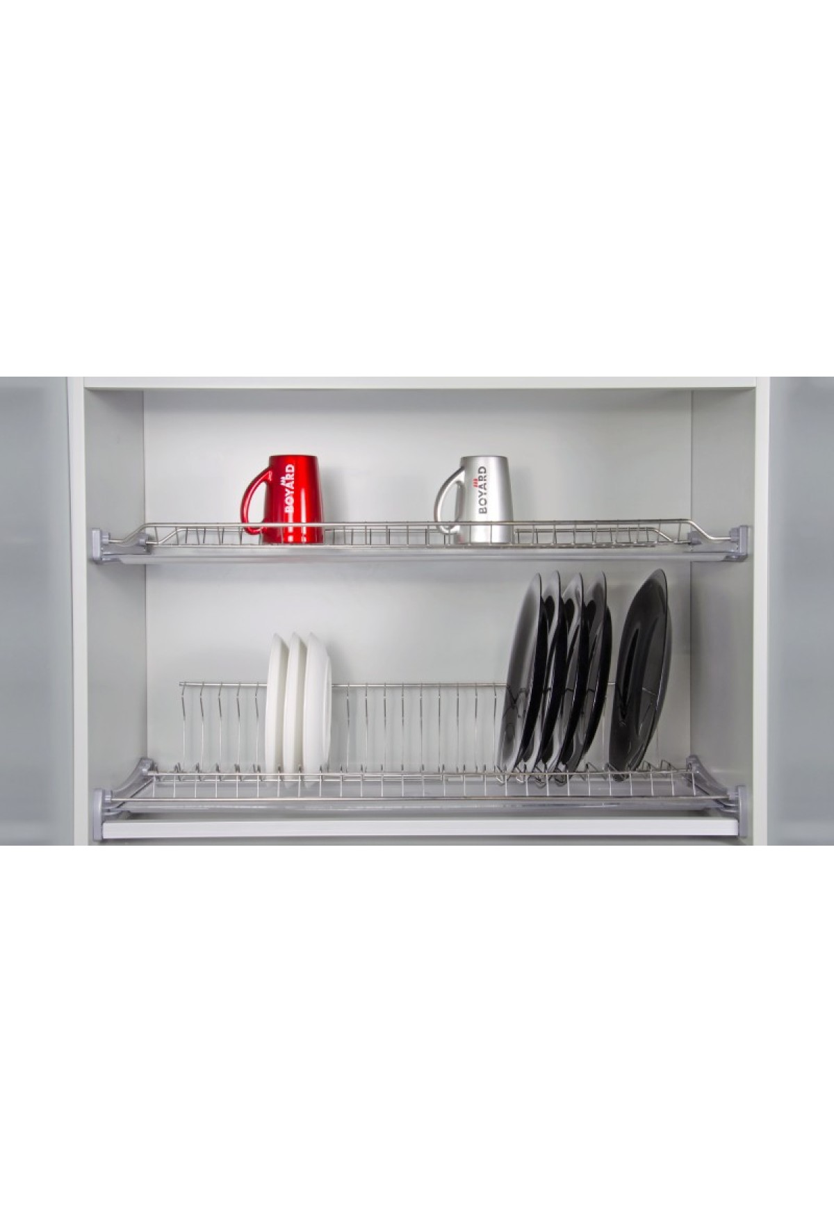 LORA SU06 — двухуровневая сушка для посуды из нержавеющей стали с нижним ярусом L-образной формы для более стабильного удержания разноформатных тарелок. Модель имеет два плотных поддона под каждым уровнем для сбора капель воды, стекающих с посуды. Нижний ярус оснащён поперечным прутком, который препятствует проваливанию маленьких блюдец.