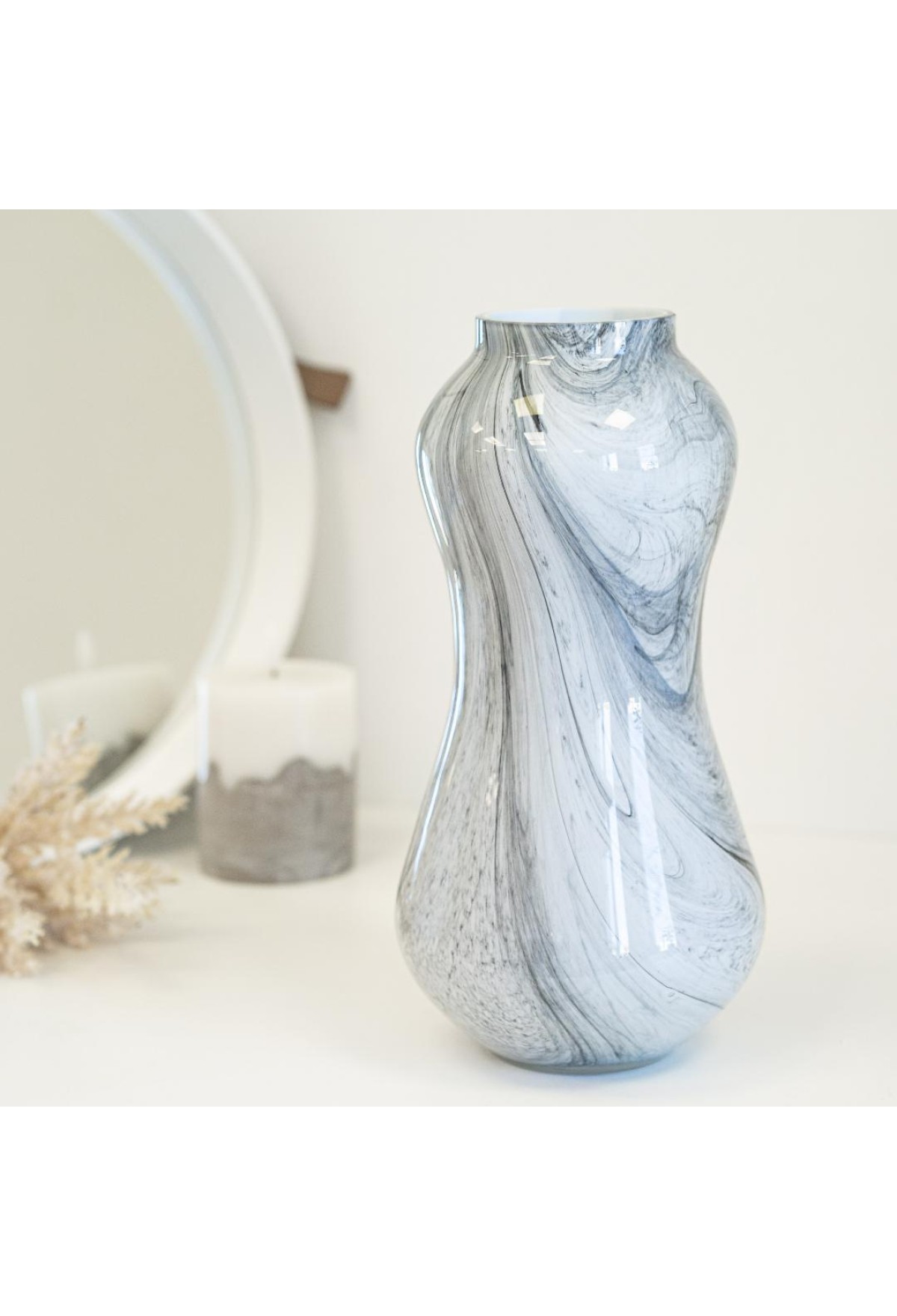 • Декоративная ваза "Эбру" из цветного стекла, Д152 Ш152 В300, серый