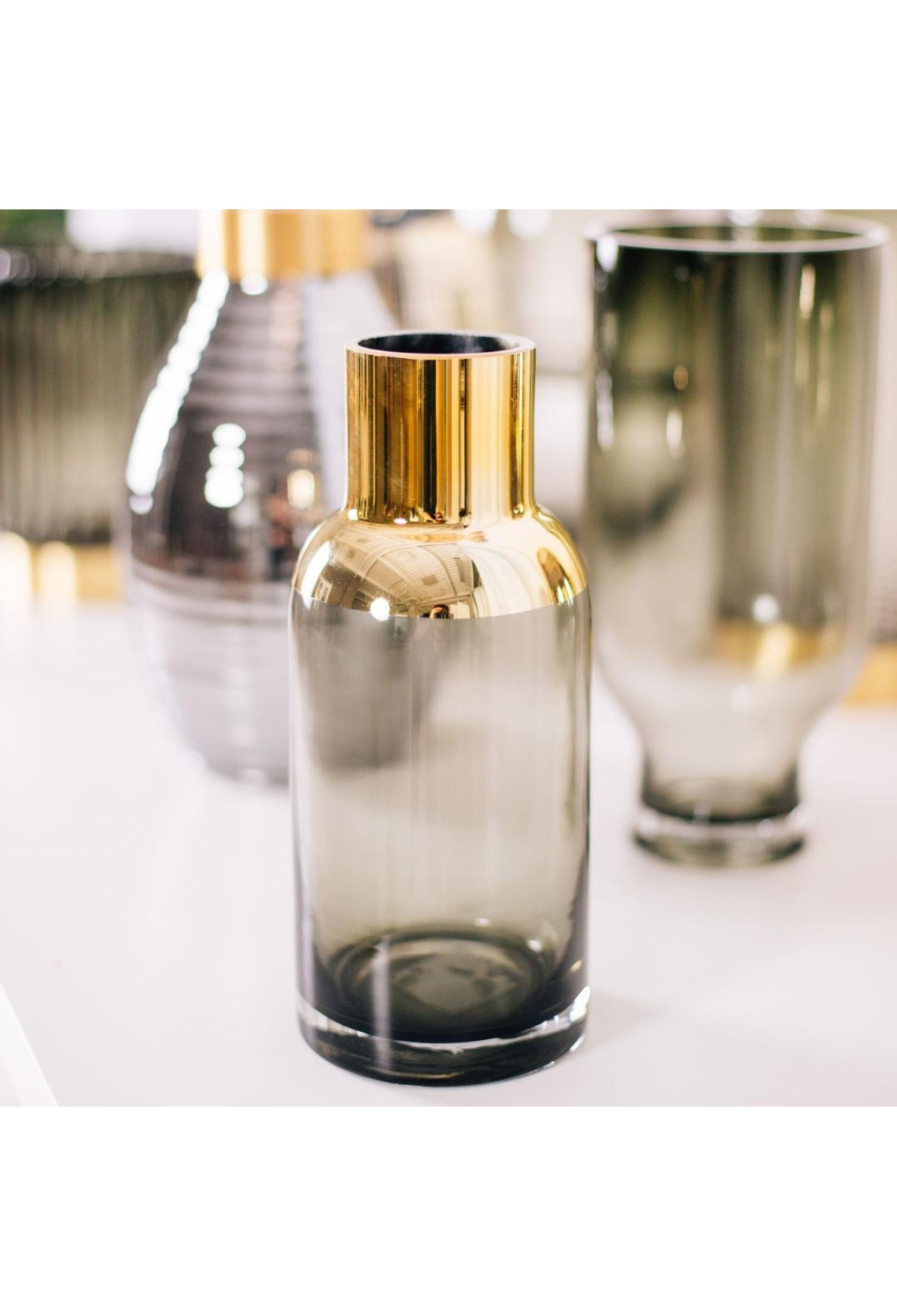 Гладкая или рельефная ваза с золотым напылением – настоящая находка для создания стильного интерьера. В полупрозрачных моделях свет красиво проходит сквозь стекло, отражаясь на гранях; видно количество воды, которое осталось в сосуде.
