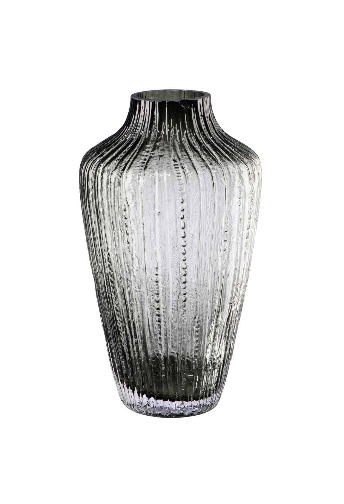 Красивая стеклянная ваза необычной фактуры украсит монохромные интерьеры, станет эксклюзивной деталью в классических пространствах. Вазу можно использовать как самостоятельный предмет декора, а также наполнить живыми цветами. Роскошно в таком сосуде смотрятся композиции из сухоцветов и искусственных растений. Неровная поверхность напоминает серебристую рябь на воде, изменчивую и в то же время постоянную субстанцию.