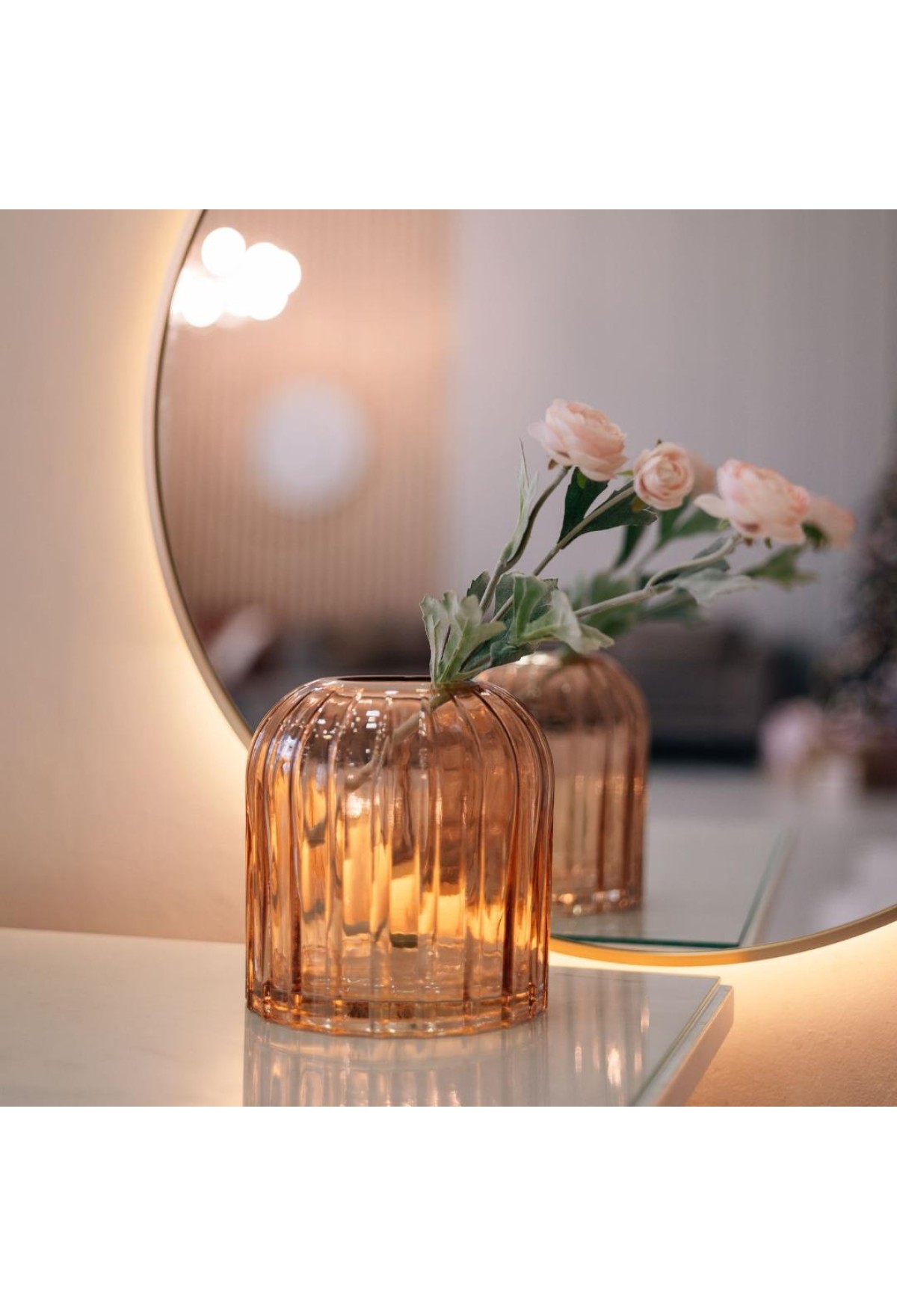 Декоративная ваза из стекла Рельеф, Д145 Ш145 В160, персиковый