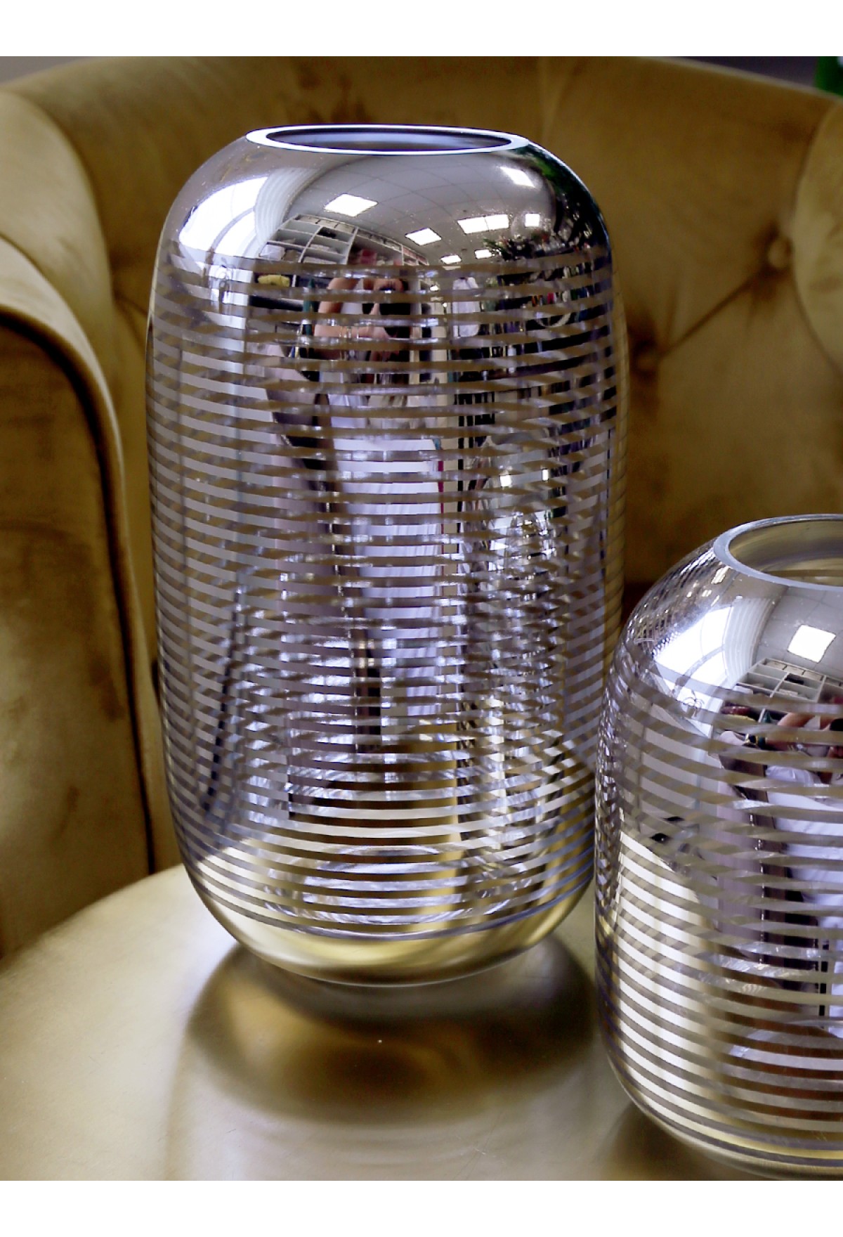 Декоративная ваза из стекла с cеребряным напылением, Д150 Ш150 В270, серебристый