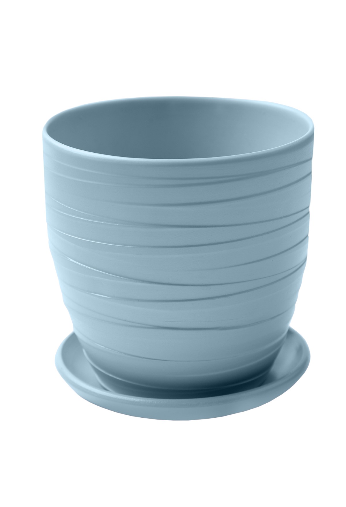 • Керамический горшок Рельеф с подставкой, 4,7 л., Д215 Ш215 В200, нежно-голубой
