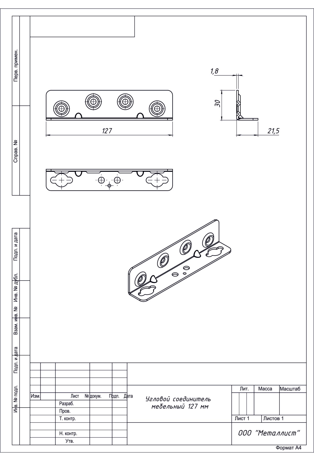 УГЛОВОЙ СОЕДИНИТЕЛЬ МЕБЕЛЬНЫЙ 127мм (50 шт.) от 27.71 руб с доставкой в интернет-магазине завода «Металлист». Качественная продукция. Выгодные цены. Продукция от производителя. 50 шт. в коробке