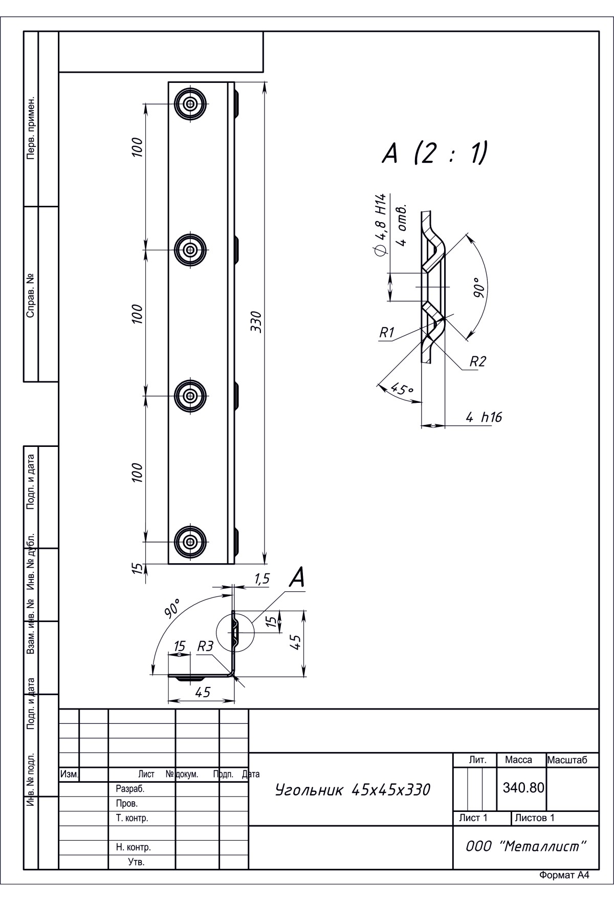 Угольник 45*45*330 Гост 16561-76 (10 Шт.) Б/П