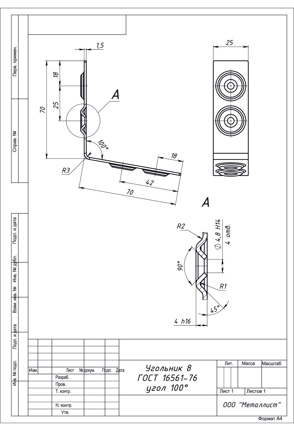 УГОЛЬНИК 8 УГОЛ НА 100 ГРАДУСОВ ГОСТ 16561-76 (60 шт.) от 12.5 руб с доставкой в интернет-магазине завода «Металлист». Качественная продукция. Выгодные цены. Продукция от производителя. 60 шт. в коробке