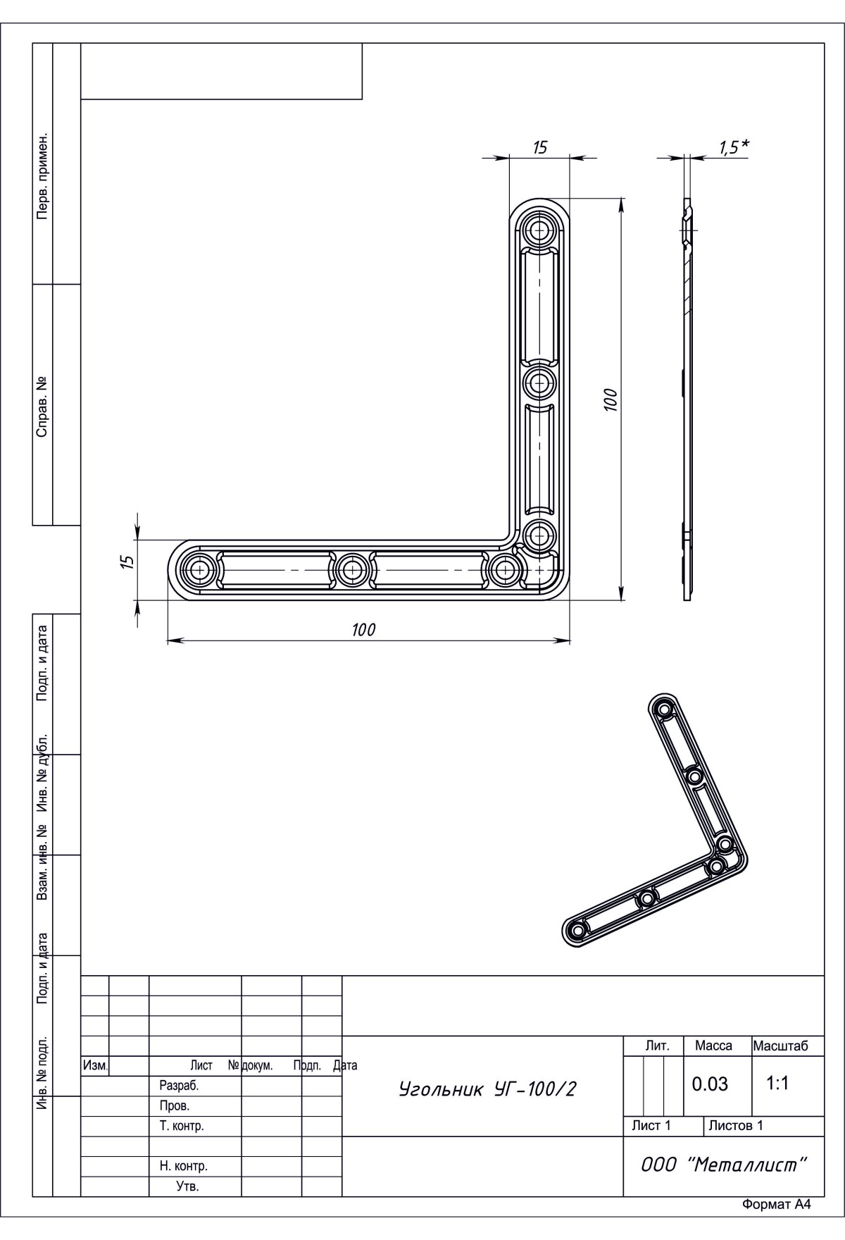 УГОЛЬНИК УГ-100/2 (250 шт.) от 18.59 руб с доставкой в интернет-магазине завода «Металлист». Качественная продукция. Выгодные цены. Продукция от производителя. 250 шт. в коробке