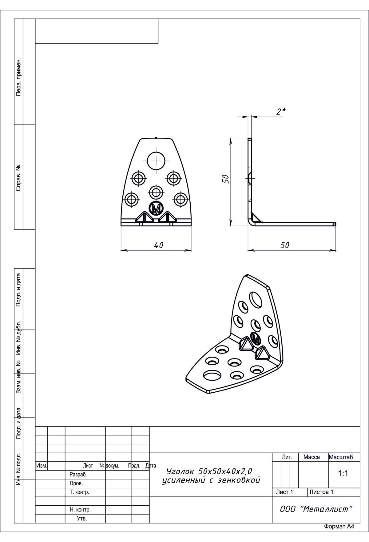 УГОЛОК КРЕПЕЖНЫЙ 50*50*40*2.0 УСИЛЕН. (С ЗЕНКОВКОЙ) (100 шт.) от 13.37 руб с доставкой в интернет-магазине завода «Металлист». Качественная продукция. Выгодные цены. Продукция от производителя. 100 шт. в коробке