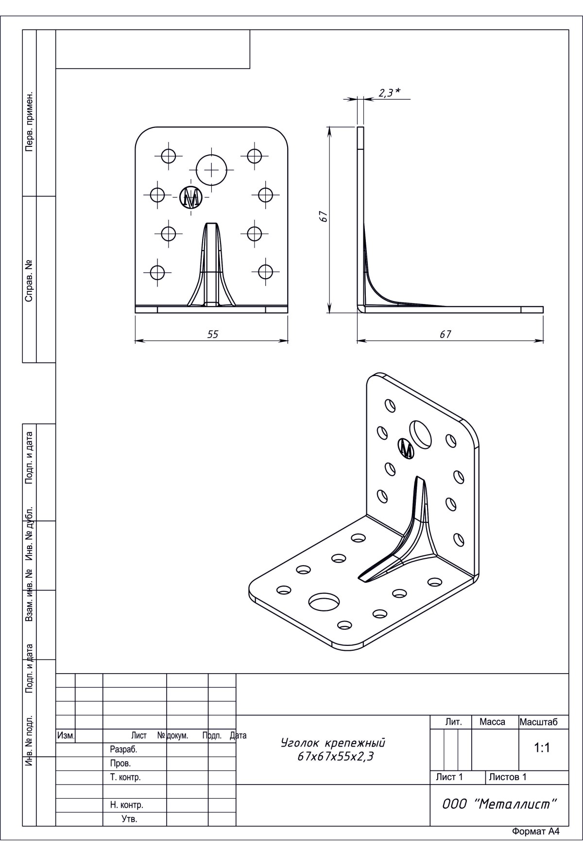 УГОЛОК КРЕПЕЖНЫЙ 67*67*55*2,3 УСИЛЕН. (40 шт.) от 27.94 руб с доставкой в интернет-магазине завода «Металлист». Качественная продукция. Выгодные цены. Продукция от производителя. 40 шт. в коробке