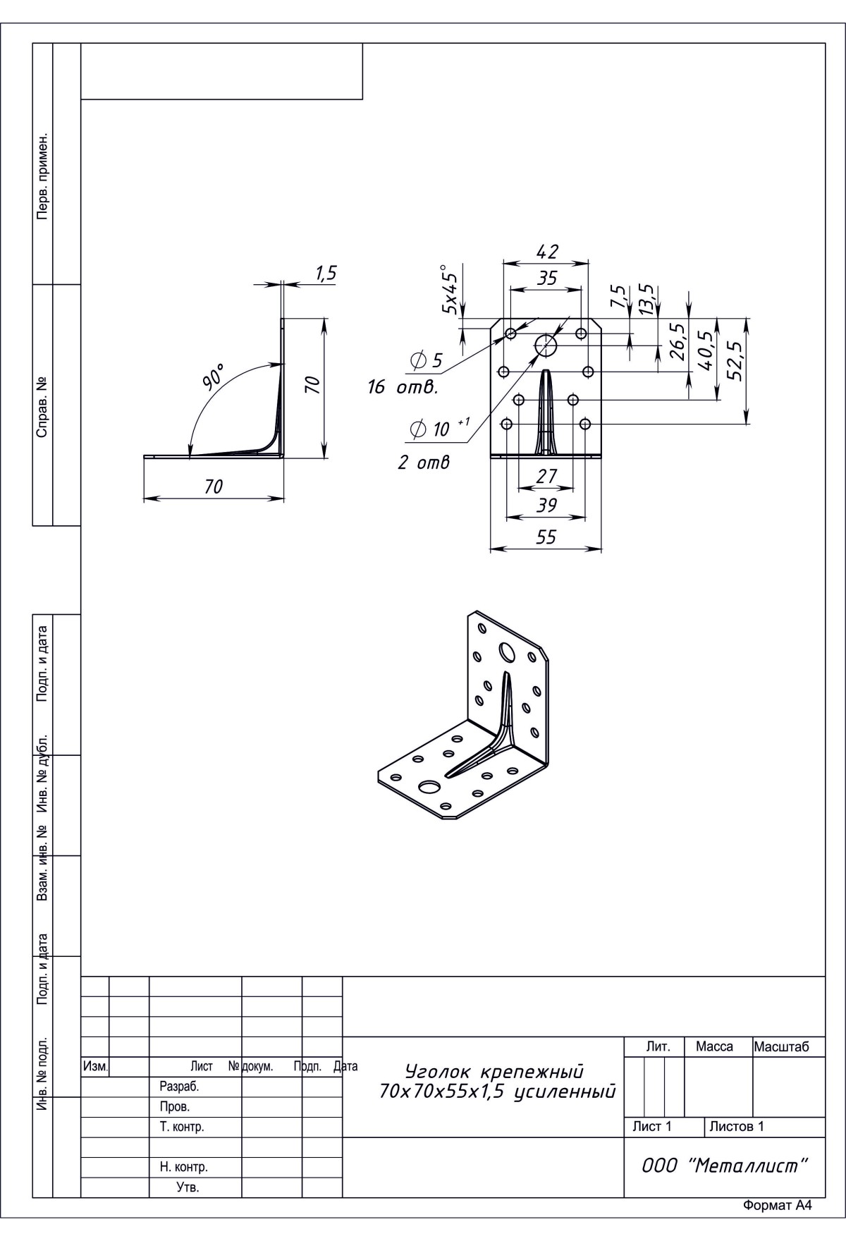 УГОЛОК КРЕПЕЖНЫЙ 70*70*55*1,5 УСИЛЕН. (40 шт.) от 11.4 руб с доставкой в интернет-магазине завода «Металлист». Качественная продукция. Выгодные цены. Продукция от производителя. 40 шт. в коробке