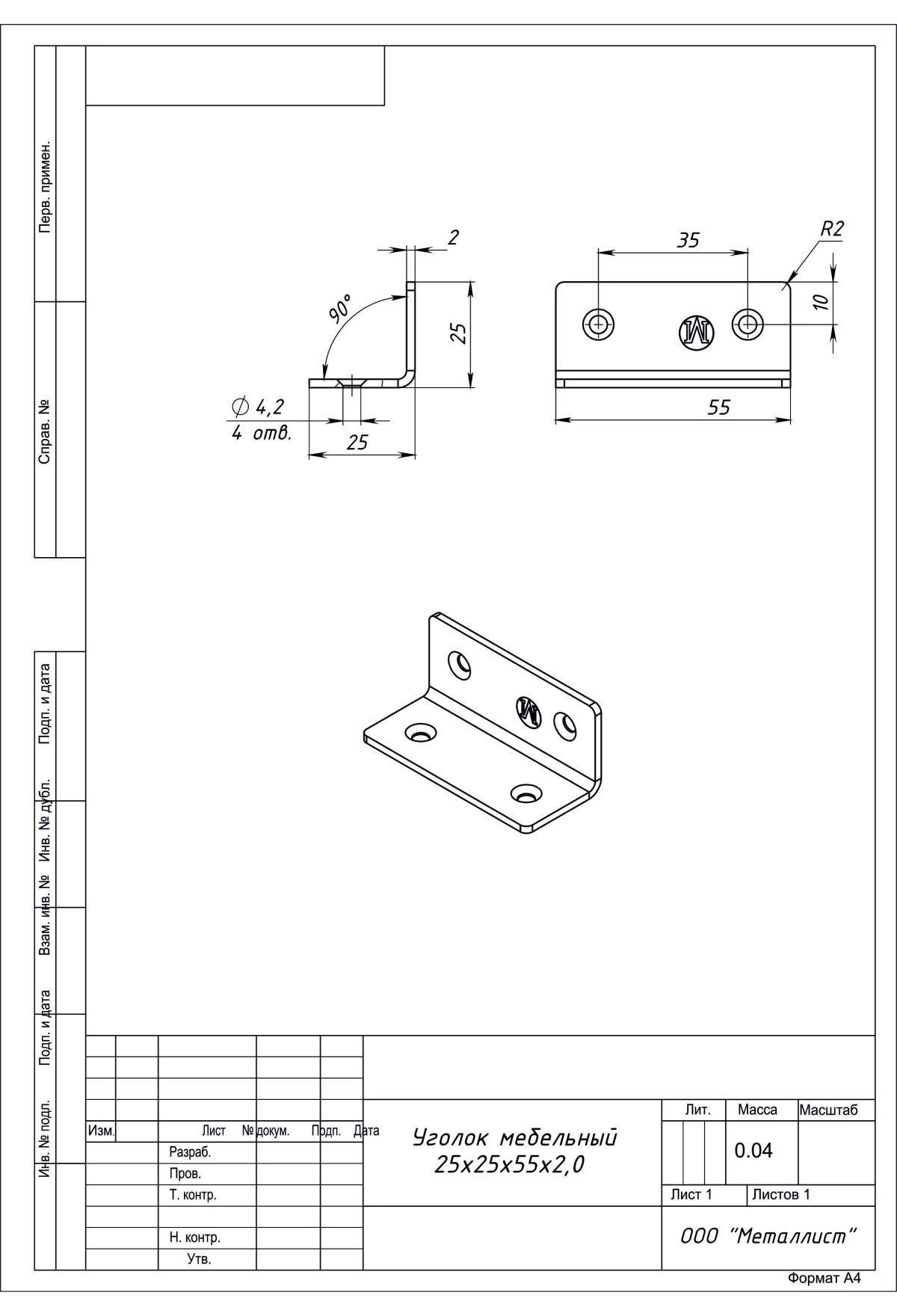УГОЛОК МЕБЕЛЬНЫЙ 25*25*55*2,0 (200 шт.) от 8.96 руб с доставкой в интернет-магазине завода «Металлист». Качественная продукция. Выгодные цены. Продукция от производителя. 200 шт. в коробке