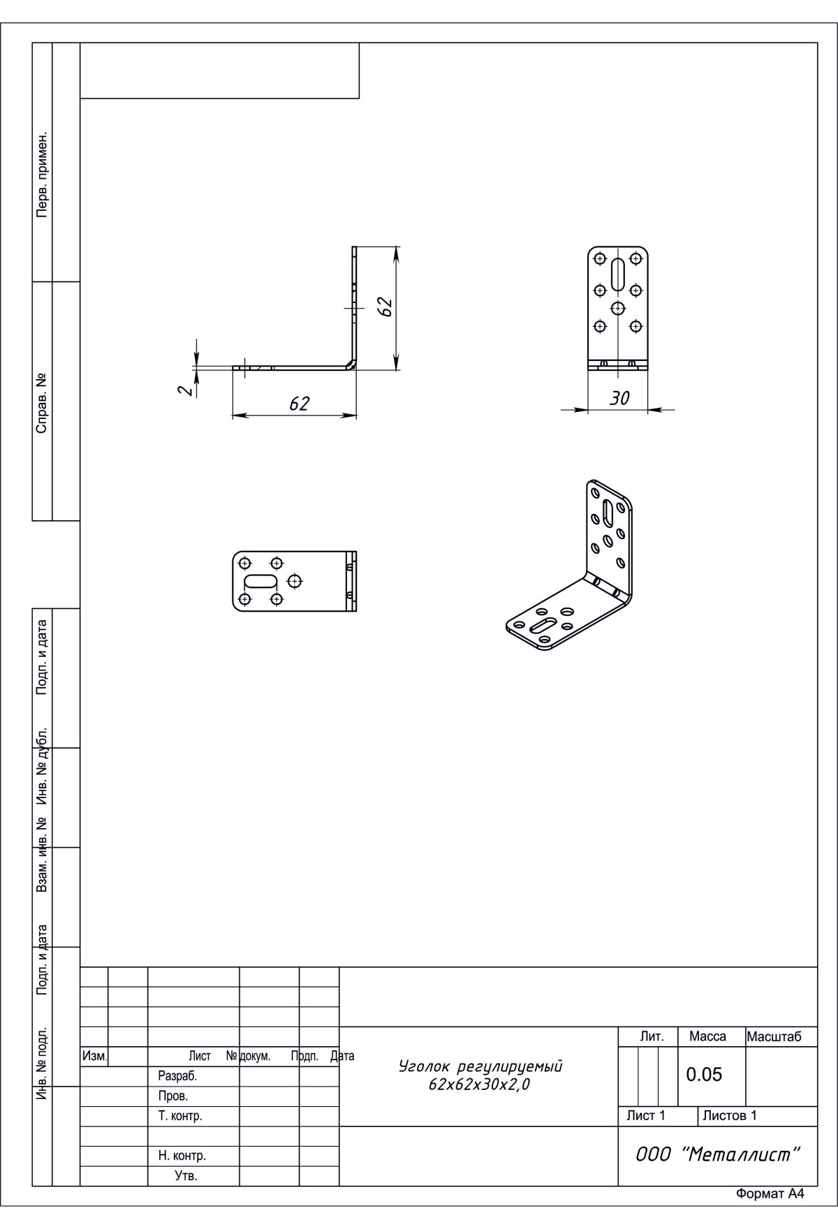 УГОЛОК РЕГУЛИРУЕМЫЙ 62*62*30*2.0 (100 шт.) от 16.55 руб с доставкой в интернет-магазине завода «Металлист». Качественная продукция. Выгодные цены. Продукция от производителя. 100 шт. в коробке