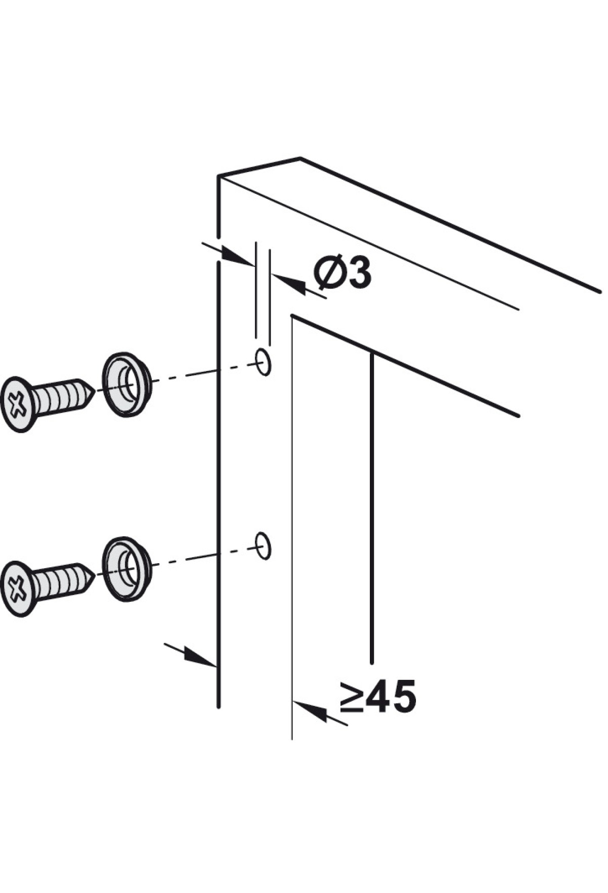 Для крепления фитинга Häfele Free space flap и алюминиевого каркасного профиля с шириной рамки от 45 мм.
