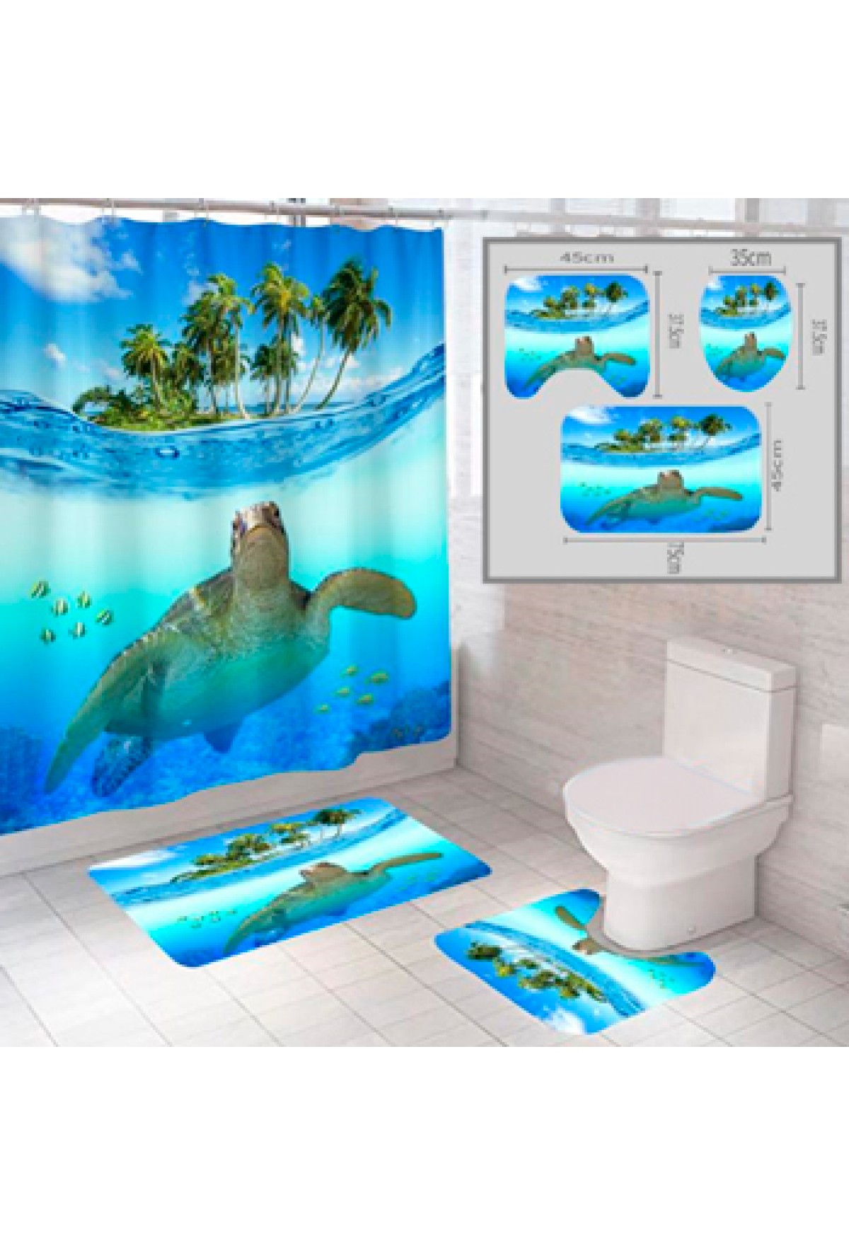 Технические характеристики Комплект штора и 2 коврика для ванной комнаты 'Океан-10'