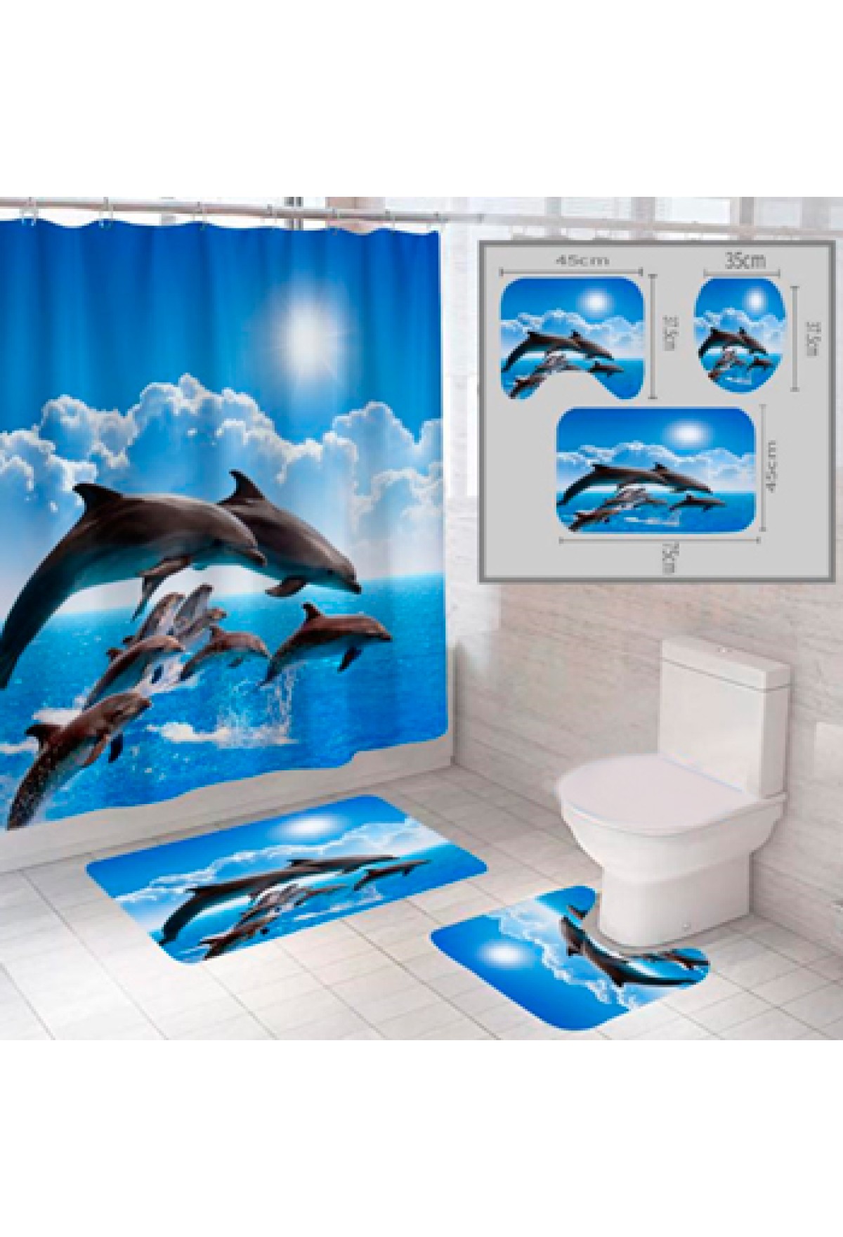 Комплектность | штора с крючками, коврик для ванной комнаты, коврик к унитазу (коврик на крышку-сиденье для унитаза в комплект не входит) |