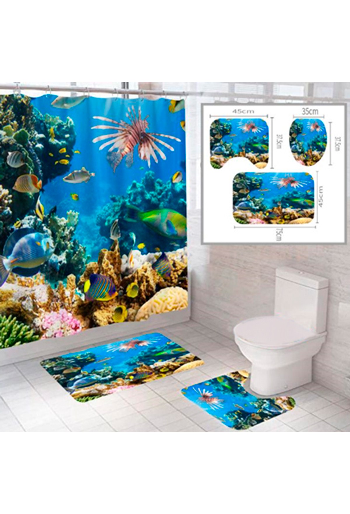 Технические характеристики Комплект штора и 2 коврика для ванной комнаты 'Океан-5'