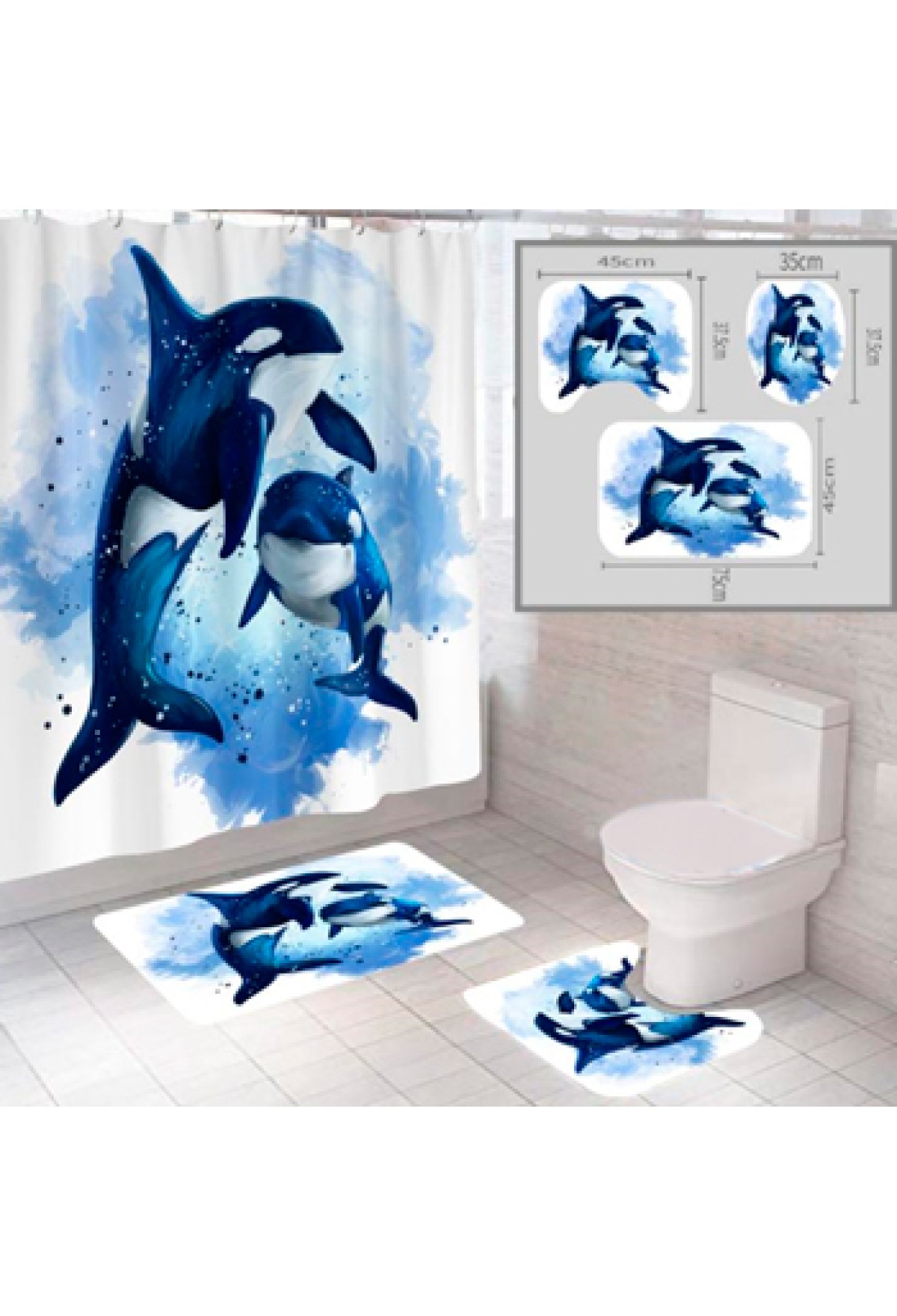 Комплект штора и 2 коврика для ванной комнаты 'Океан-7'