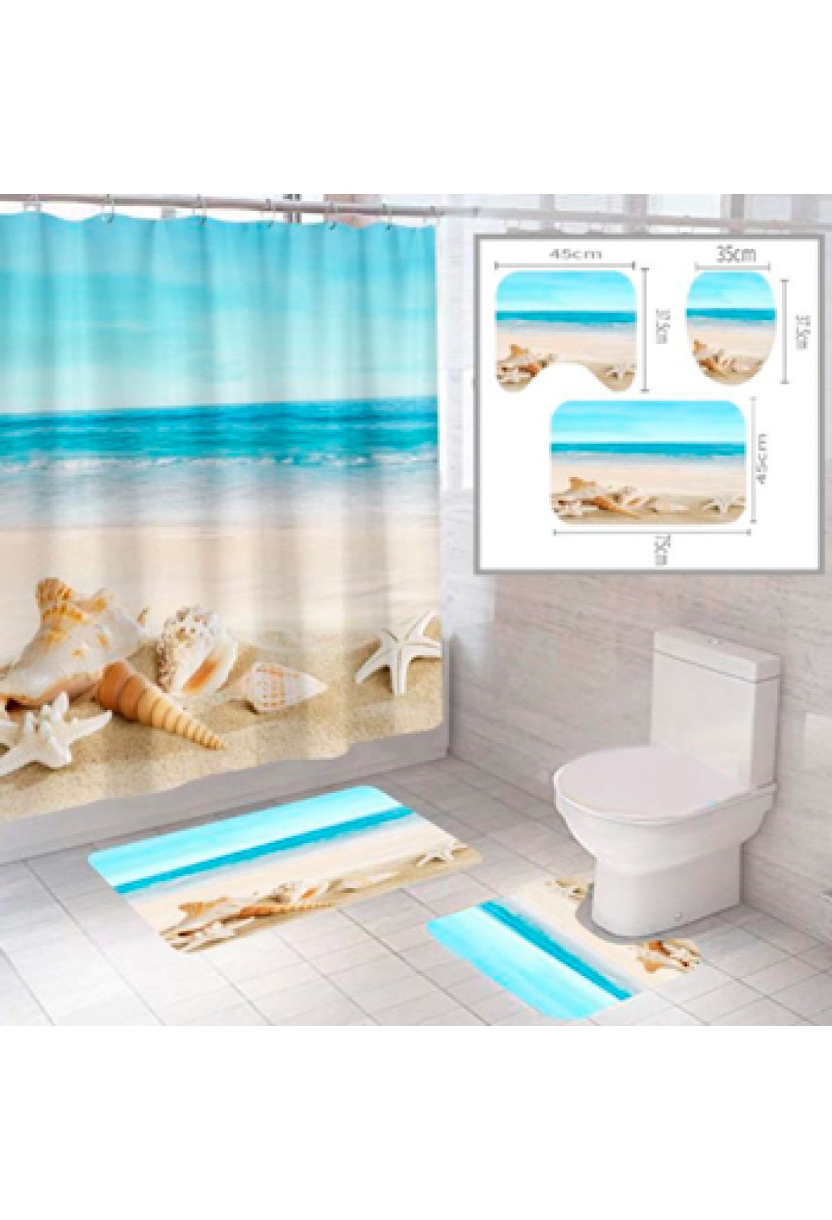Комплект штора и 2 коврика для ванной комнаты 'Пляж-2'