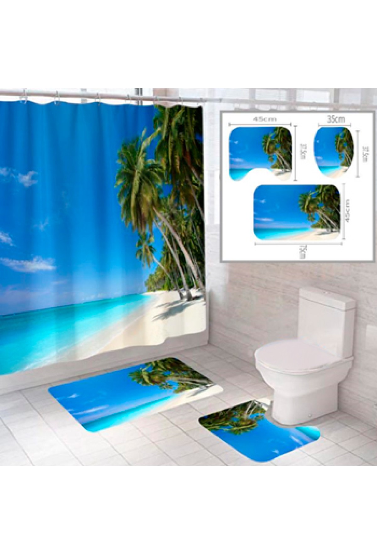 Комплект штора и 2 коврика для ванной комнаты 'Пляж-3'