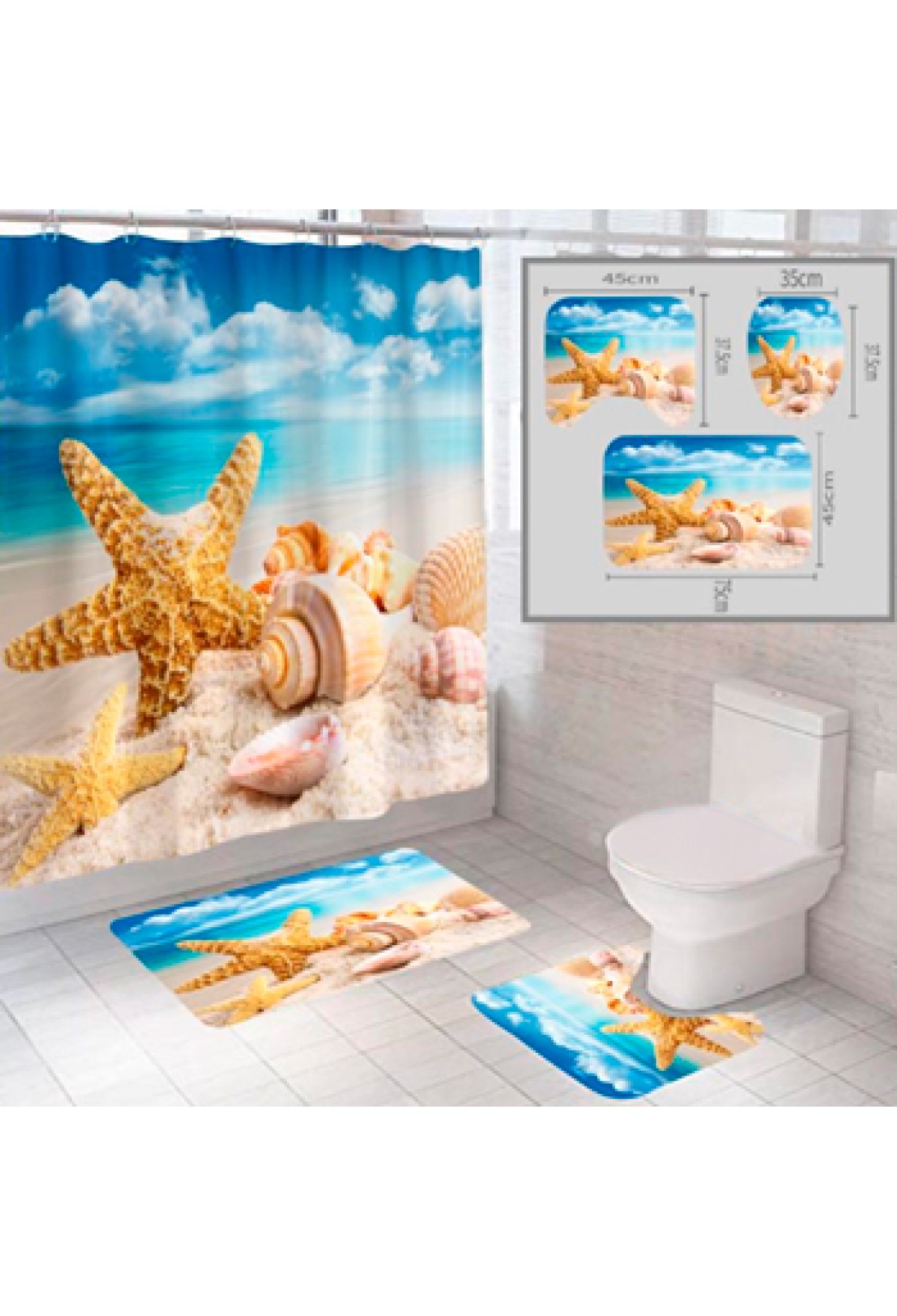 Комплект штора и 2 коврика для ванной комнаты 'Пляж-4'