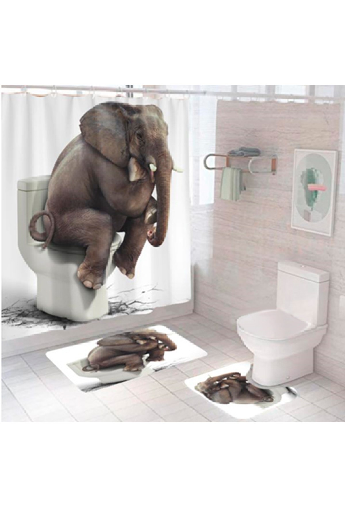 Комплект штора и 2 коврика для ванной комнаты 'Слон'