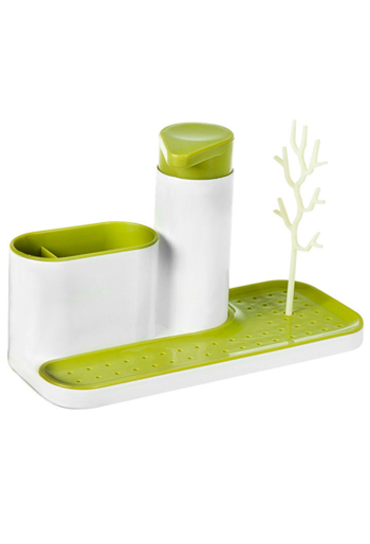 Комплектность | подставка для туалетных принадлежностей, диспенсер для жидкого мыла, 'дерево'для колец, цепочек и бижутерии, площадка для мыла |