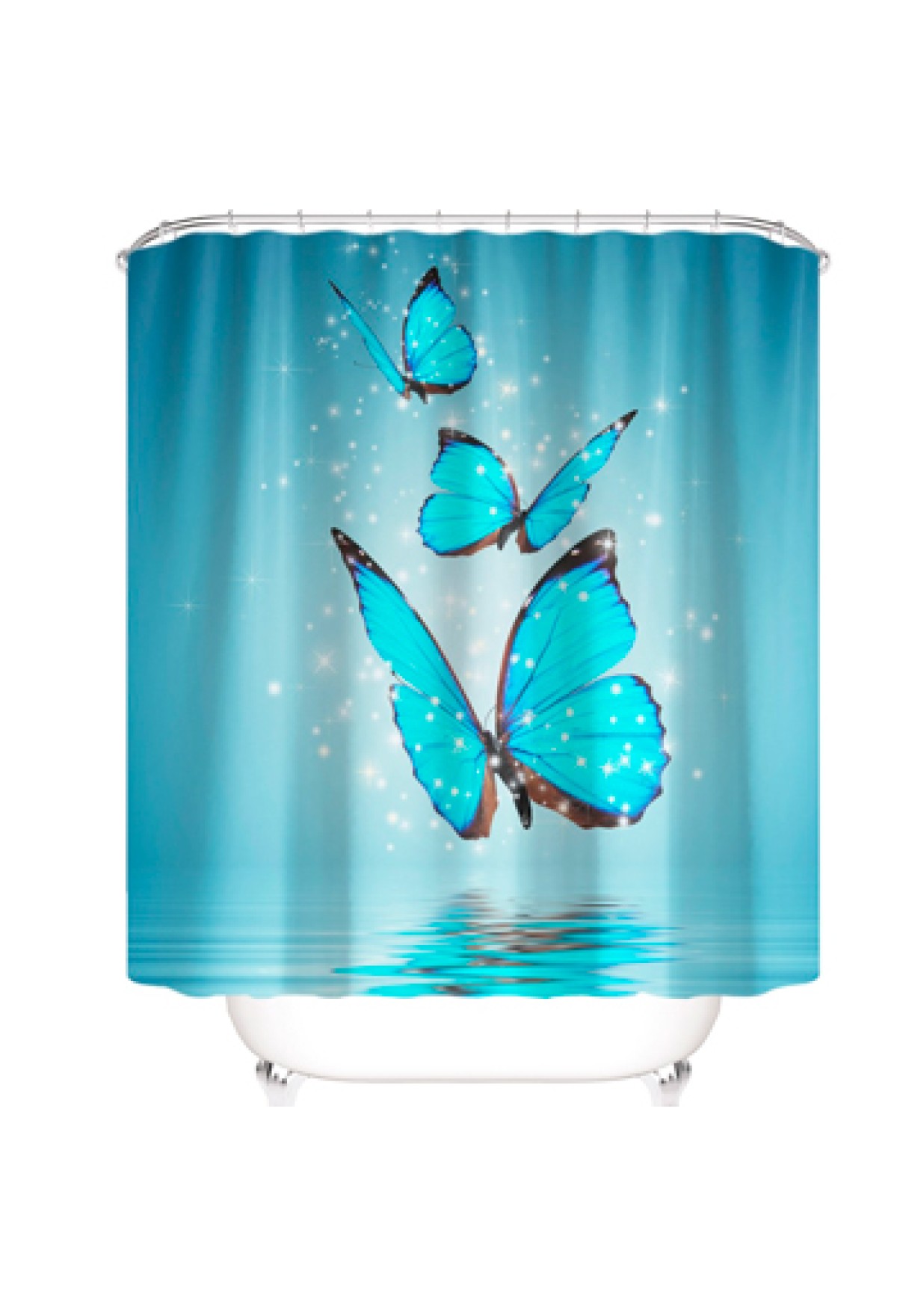 Штора для ванной комнаты с кольцами ФОТОПЕЧАТЬ 'Бабочки' 180х180