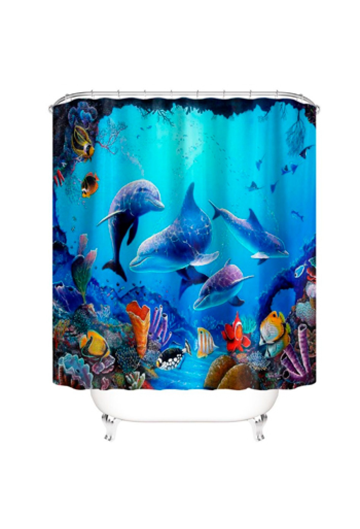 Технические характеристики Штора для ванной комнаты с кольцами ФОТОПЕЧАТЬ 'Дельфины-1' 180х180