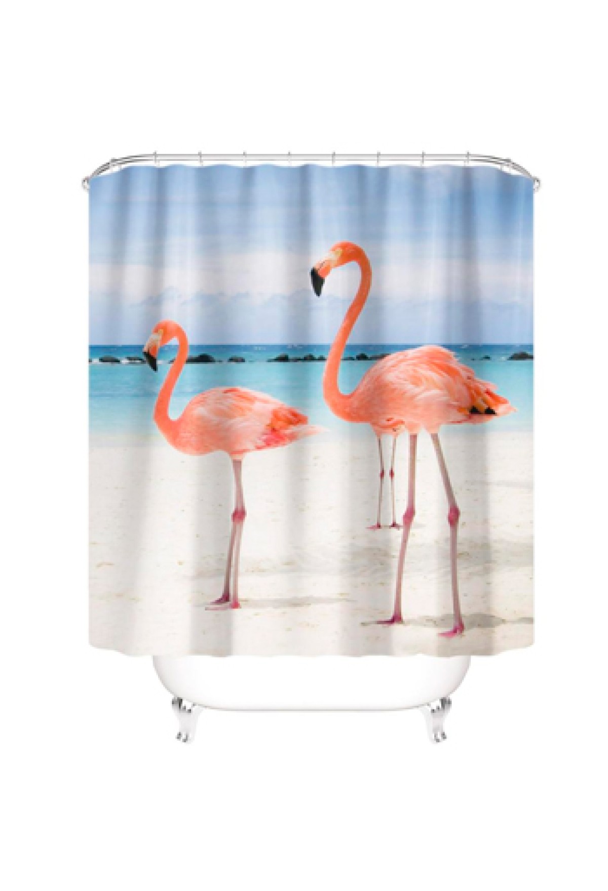 Штора для ванной комнаты с кольцами ФОТОПЕЧАТЬ 'Фламинго' 180х180