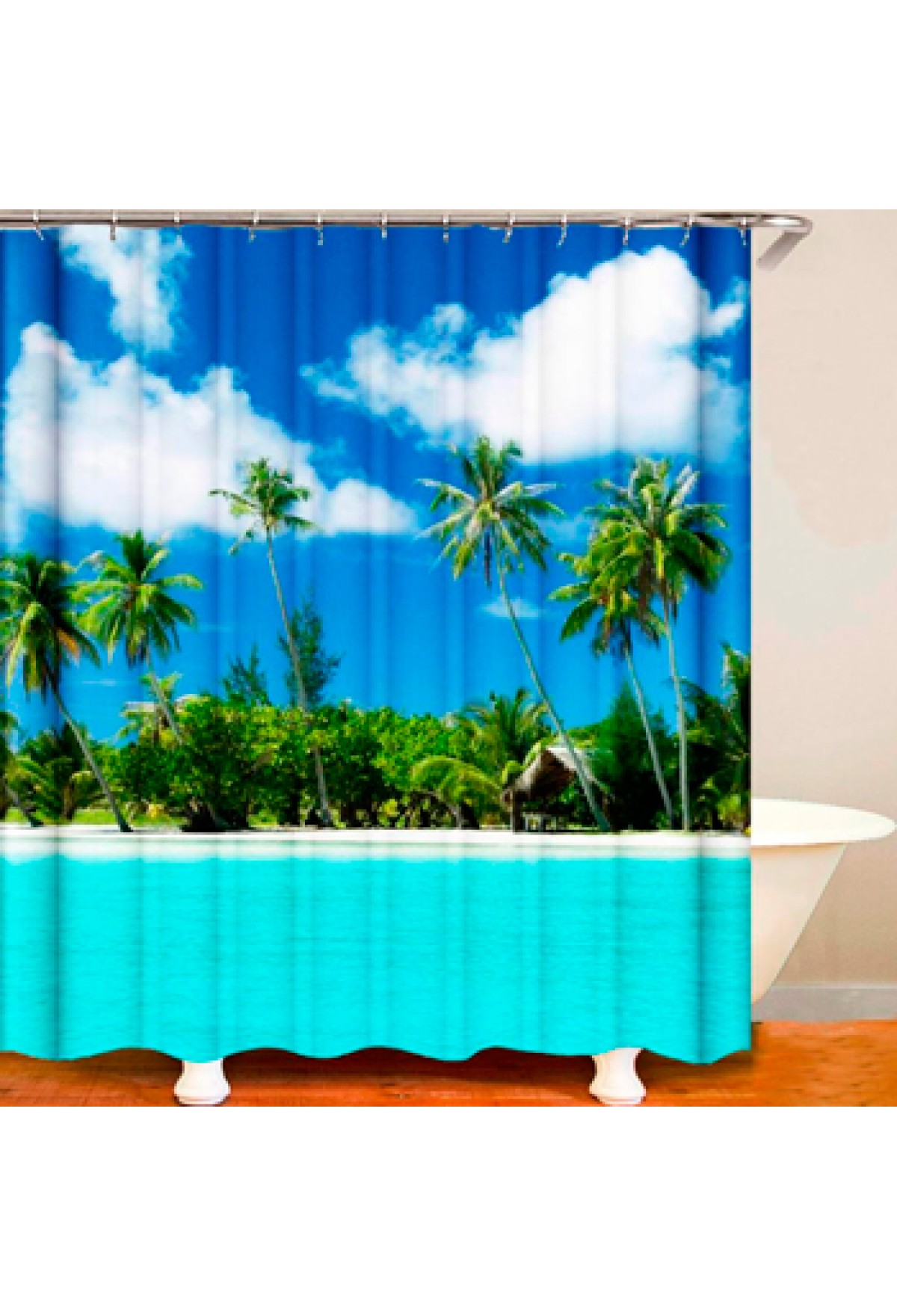 Технические характеристики Штора для ванной комнаты с кольцами ФОТОПЕЧАТЬ 'Лазурный берег' 180х180