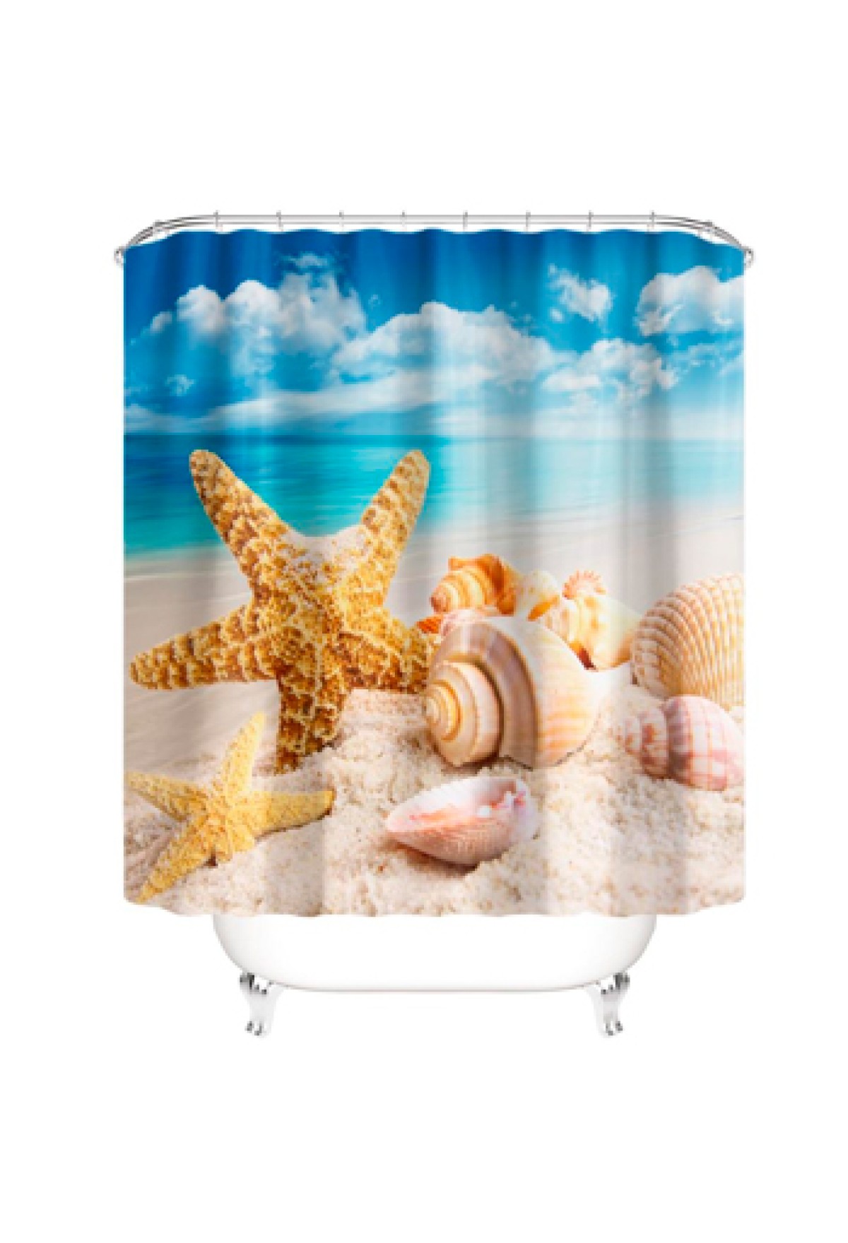 Технические характеристики Штора для ванной комнаты с кольцами ФОТОПЕЧАТЬ 'Морская звезда-1' 180х180