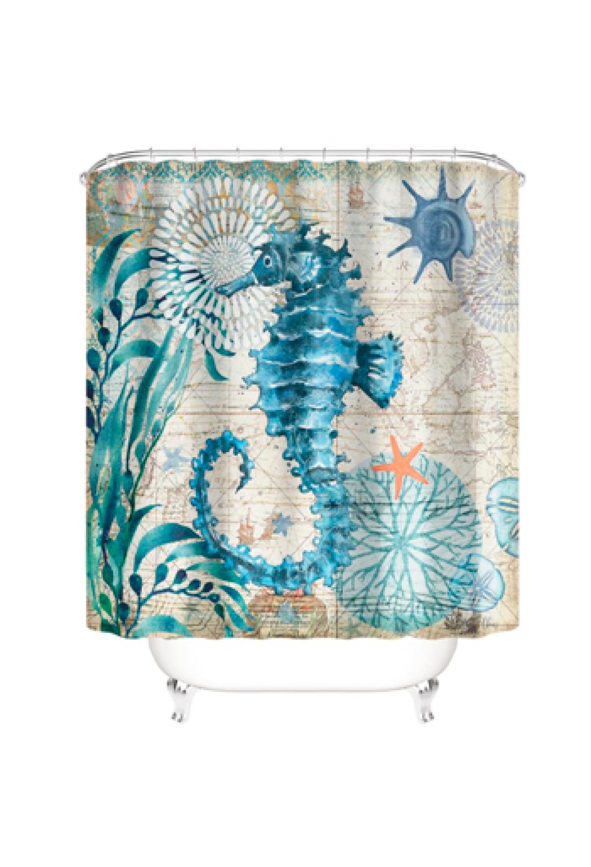 Технические характеристики Штора для ванной комнаты с кольцами ФОТОПЕЧАТЬ 'Морской конёк' 180х180