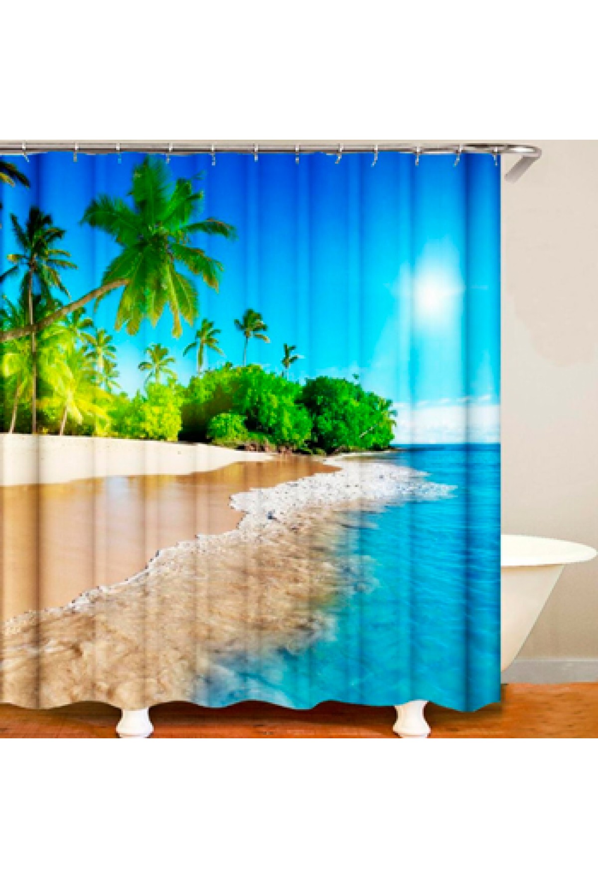 Технические характеристики Штора для ванной комнаты с кольцами ФОТОПЕЧАТЬ 'Пляж' 180х180