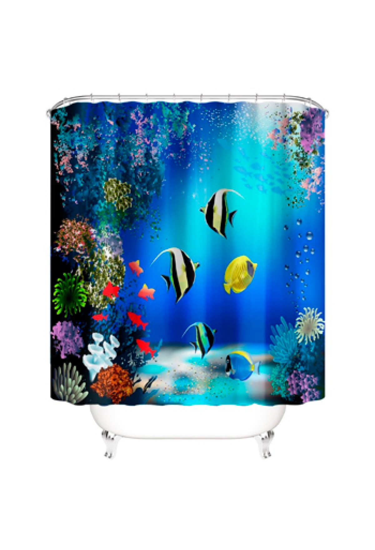 Технические характеристики Штора для ванной комнаты с кольцами ФОТОПЕЧАТЬ 'Рыбки' 180х180