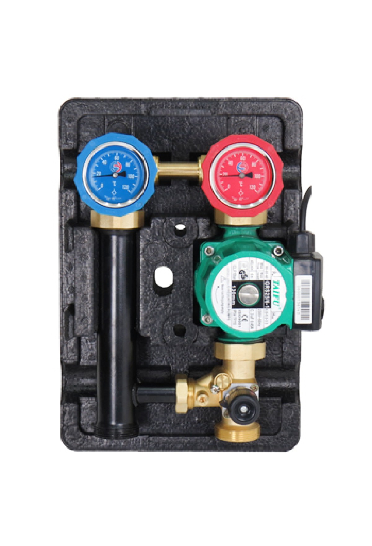 В комплекте | трехходовые шаровые краны в подающей и обратной линиях; контактные термометры в подающей и обратной линиях; встроенный обратный клапан в запорном узле обратной линии; трехходовой смеситель со ступенчатым байпасом; съемная блочная, негорючая, раздельная термоизоляция |