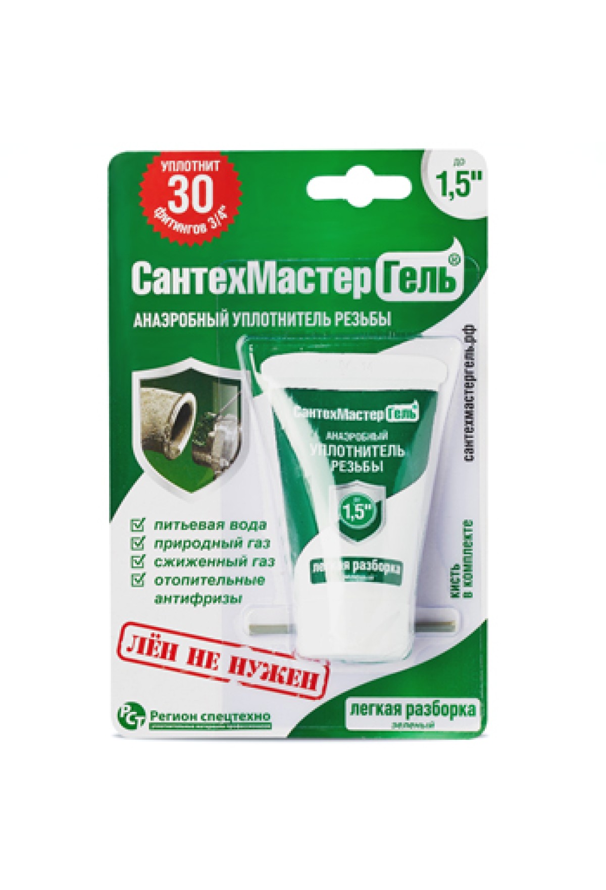Технические характеристики Уплотнитель резьбы анаэробный 'СантехМастерГель' зелёный 15 грамм