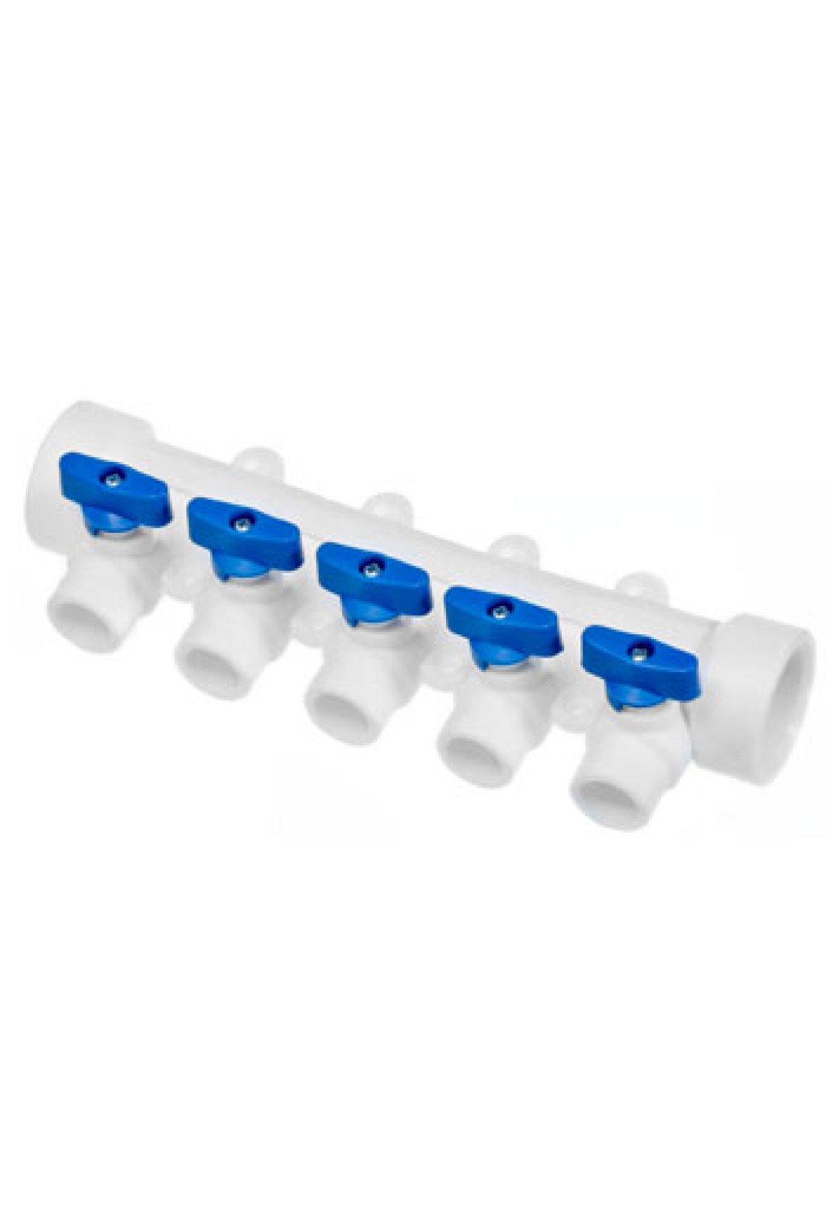 Полипропиленовый коллектор W-40х20 мм 5 выход (ручка синяя)
