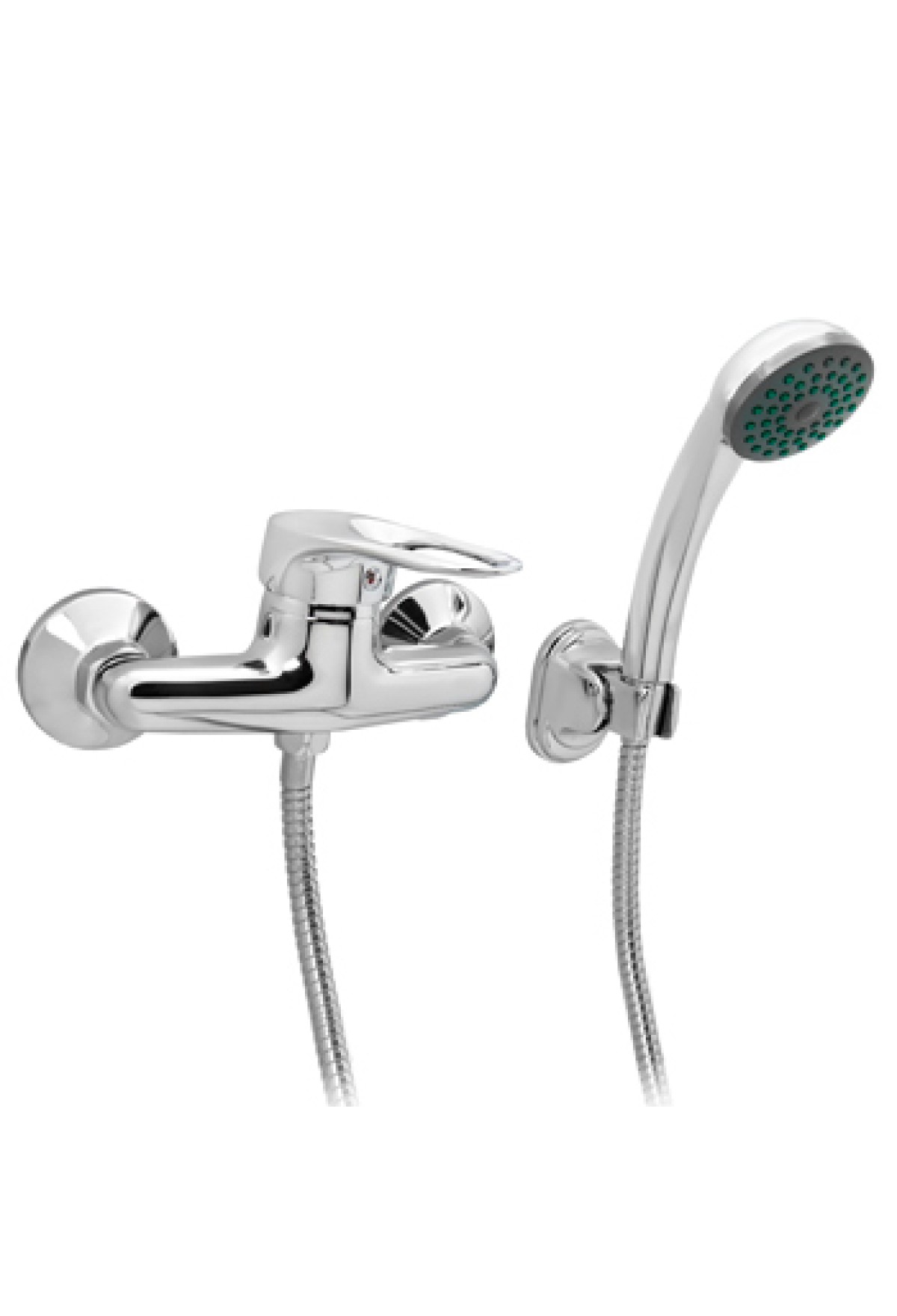 В комплекте душевая лейка, шланг, крепление