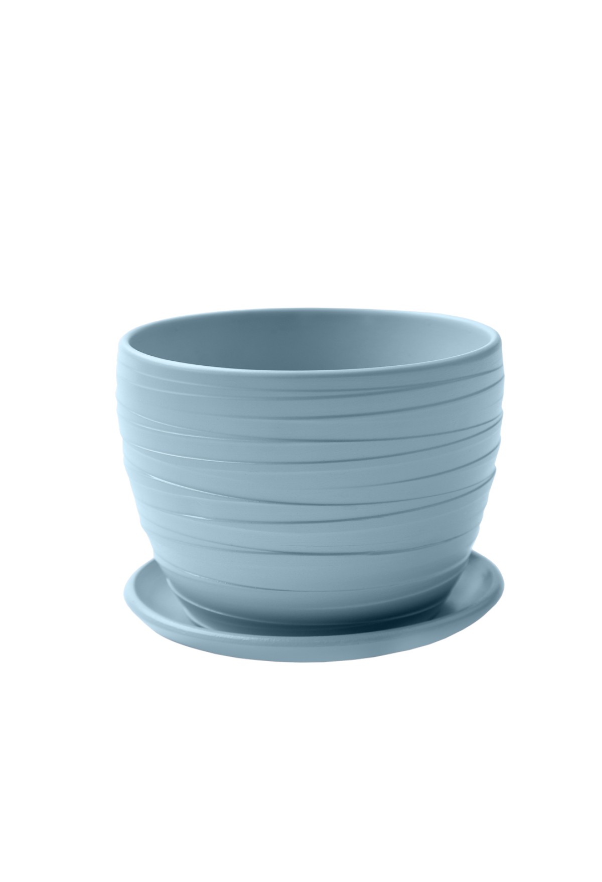 Керамический горшок Рельеф с подставкой, 5 л., Д115 Ш115 В105, нежно-голубой