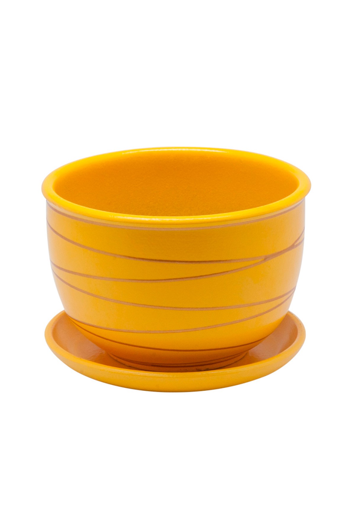 Керамический горшок с подставкой, 5л., Д130 Ш130 В90, желтый