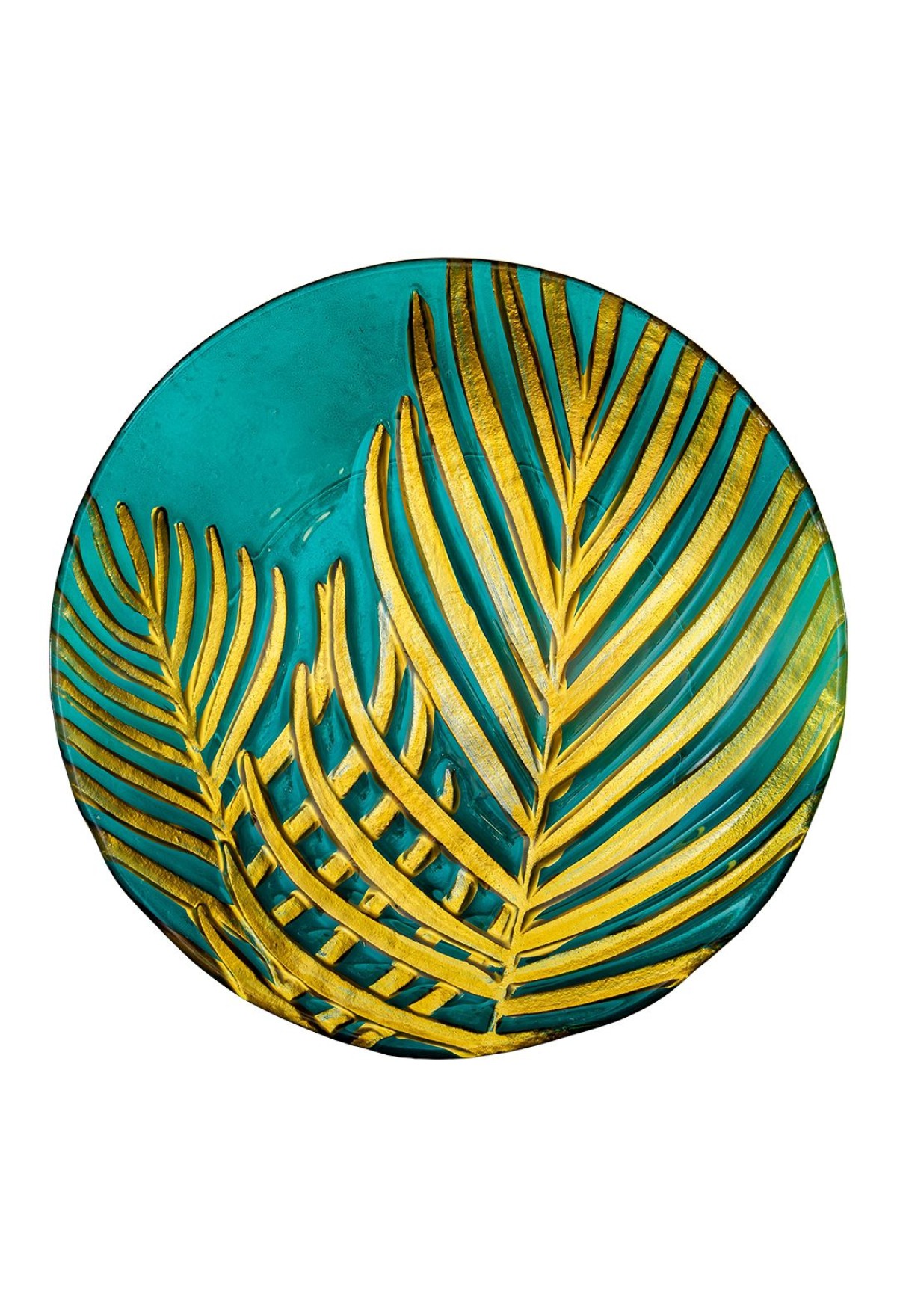 Блюдо стеклянное круглое Лист, D305, зеленый, золотой
