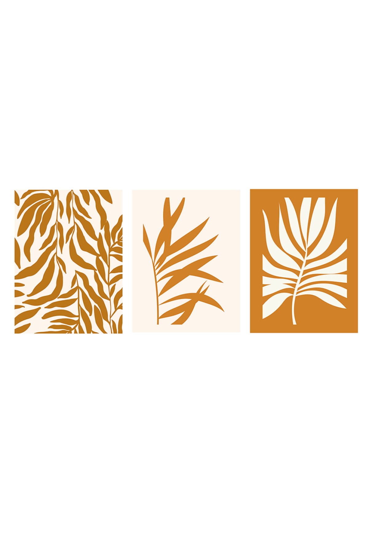 Набор постеров настенных "Листья", 3 шт., белый, бежевый, Д300 В400