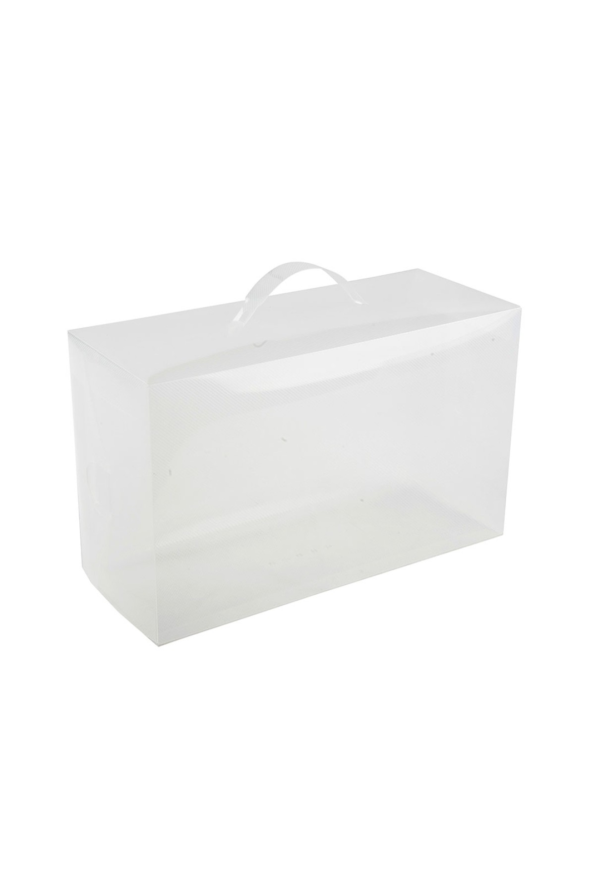 Он оснащен удобной ручкой и плотно прилегающим клапаном. Короб прозрачный, поэтому можно быстро найти необходимую пару обуви.